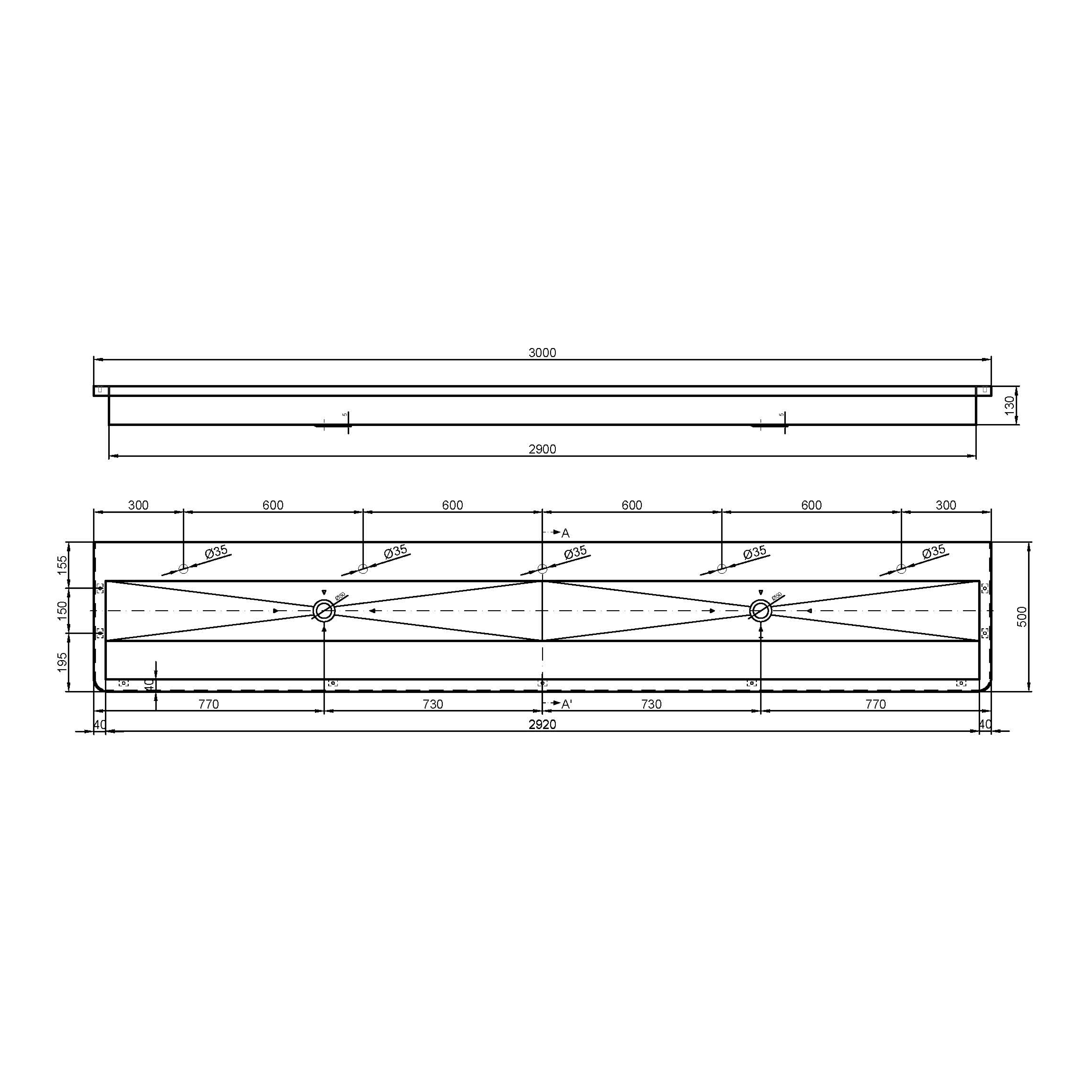 NOFER PUBLIC mosogató, 3000x130x500 mm, matt rozsdamentes acél (13050.30.SP.S)