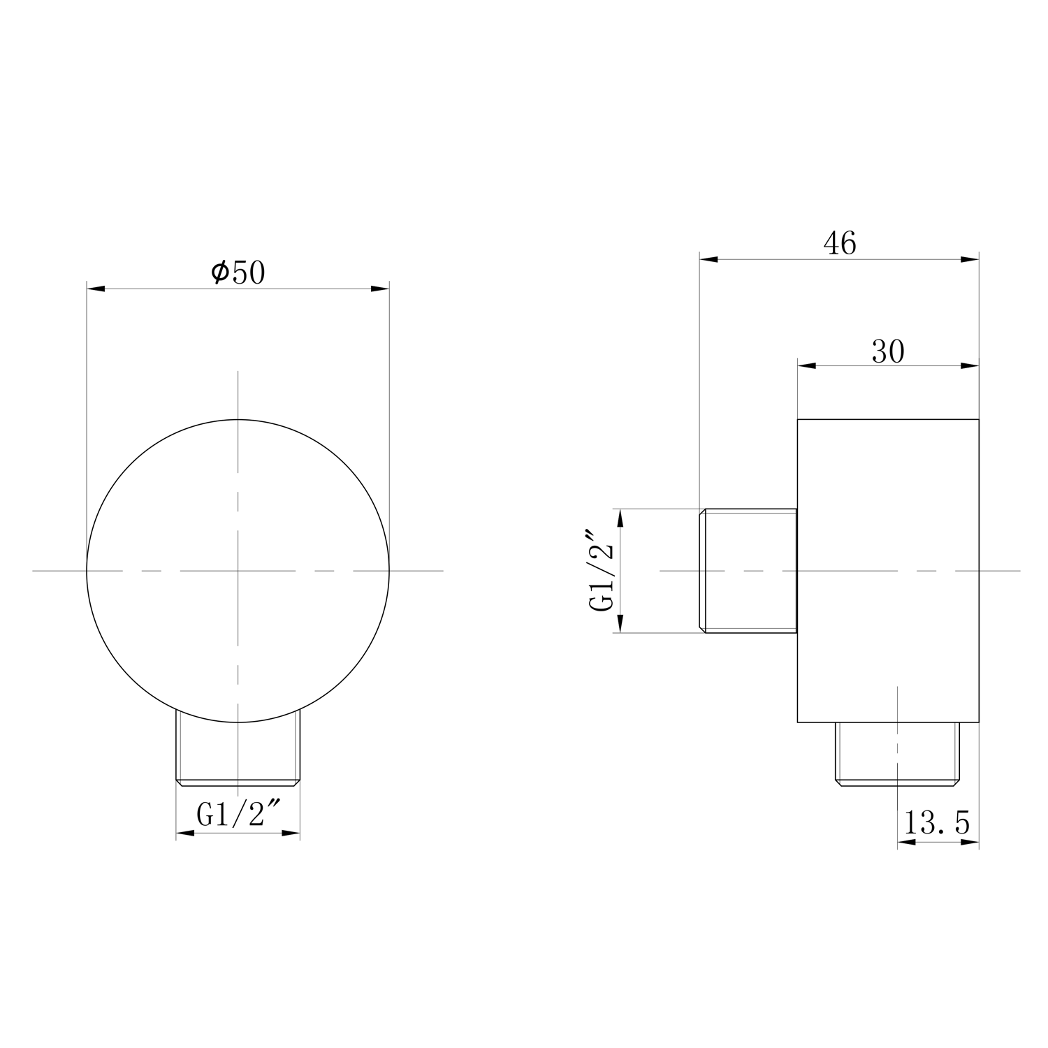 AQUALINE Fali csatlakozó zuhanyhoz, 50mm, krómm (SC371)