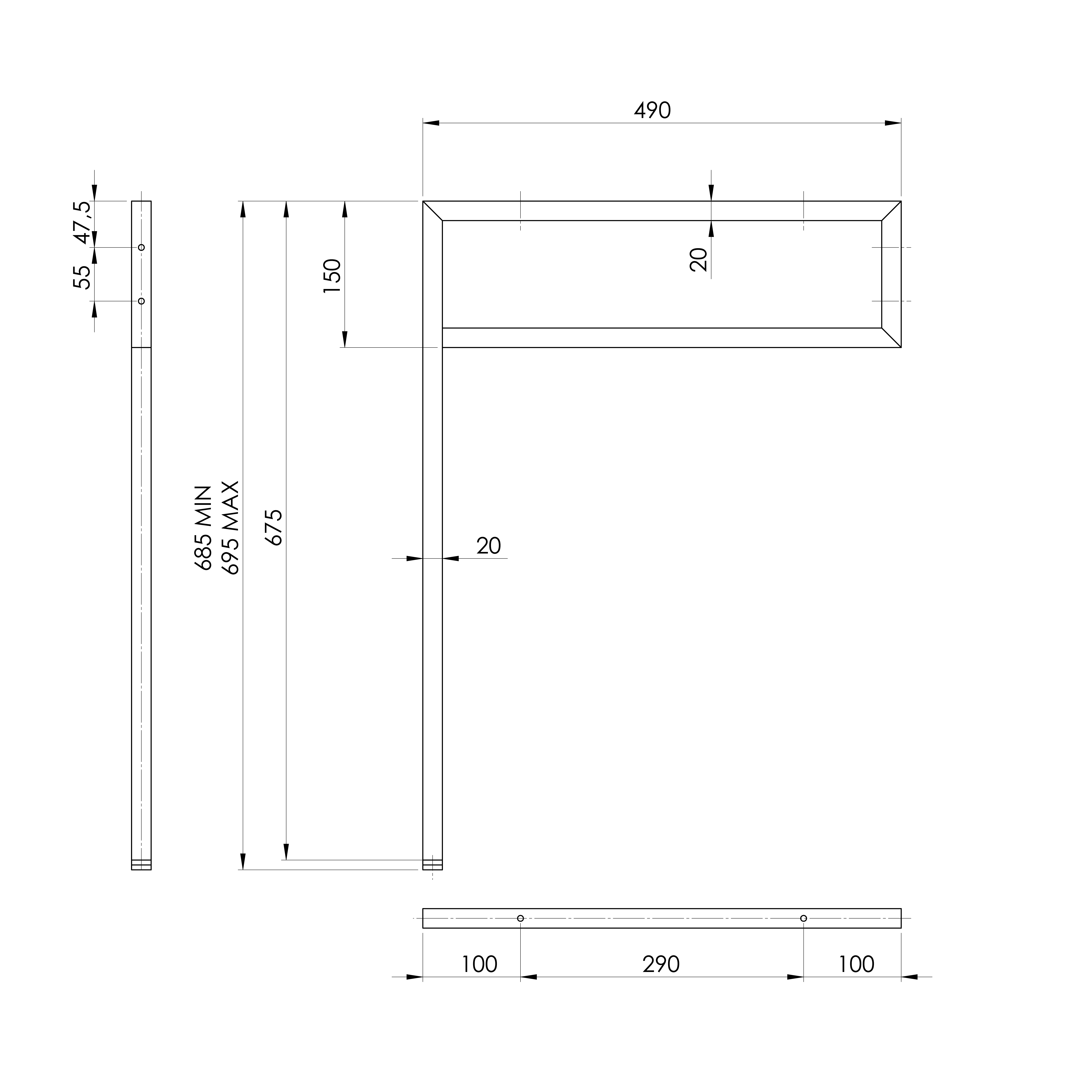 Tartókonzol, 490x690x20mm, matt fekete (30362)