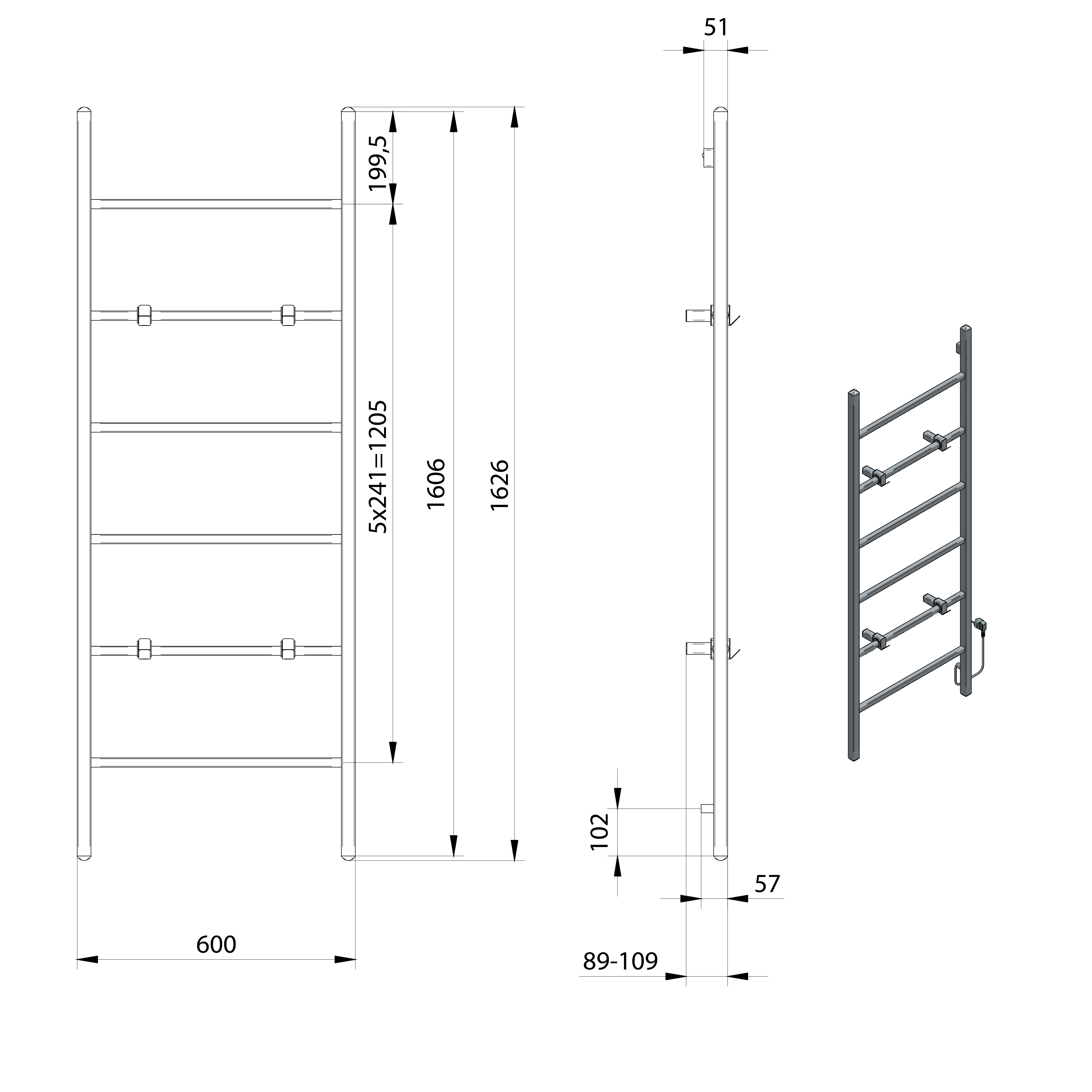 BARBO elektromos radiátor, 600x1626x89mm, 160W, matt fekete (BB906)