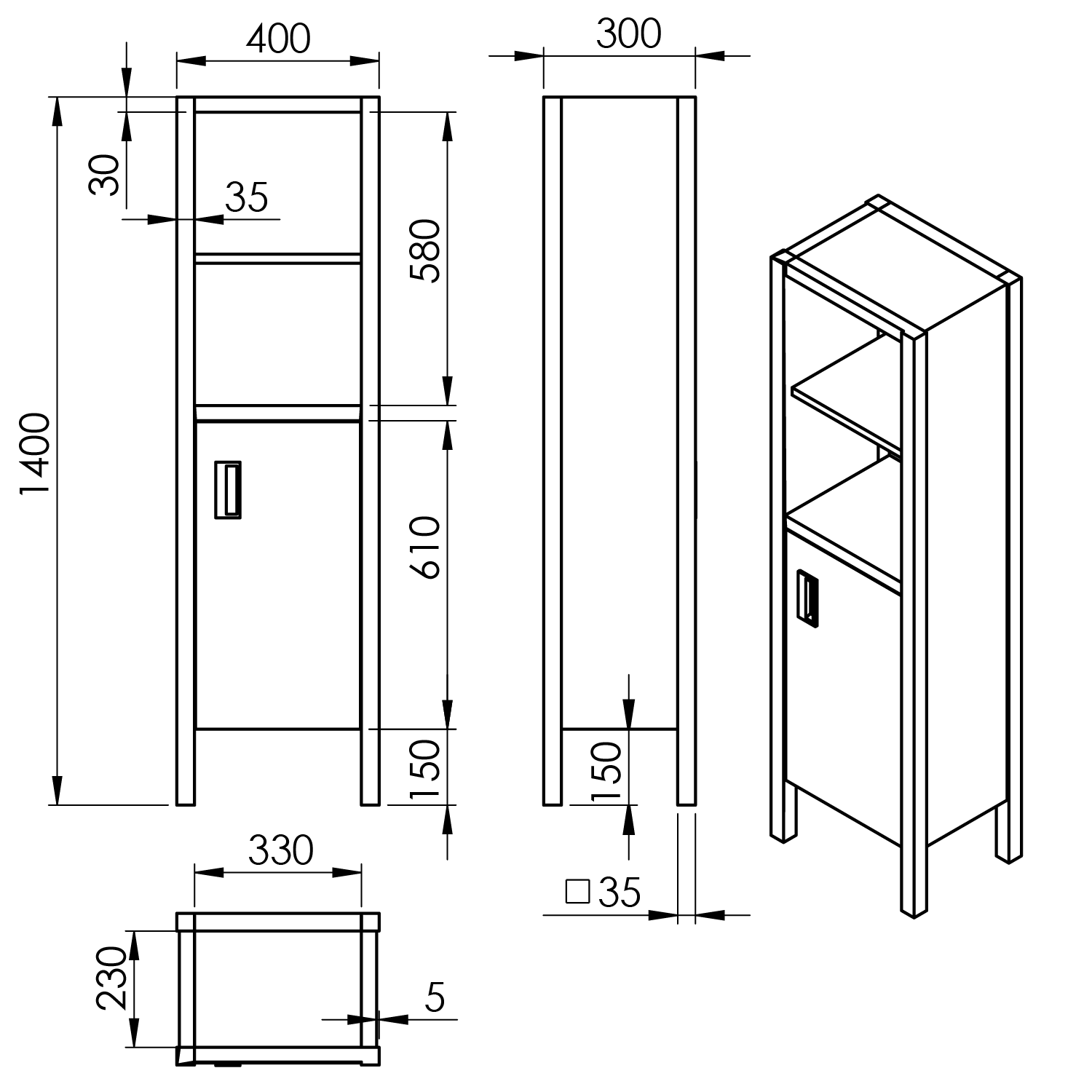 BRAND Állószekrény, 40x140x30cm (BA043S)