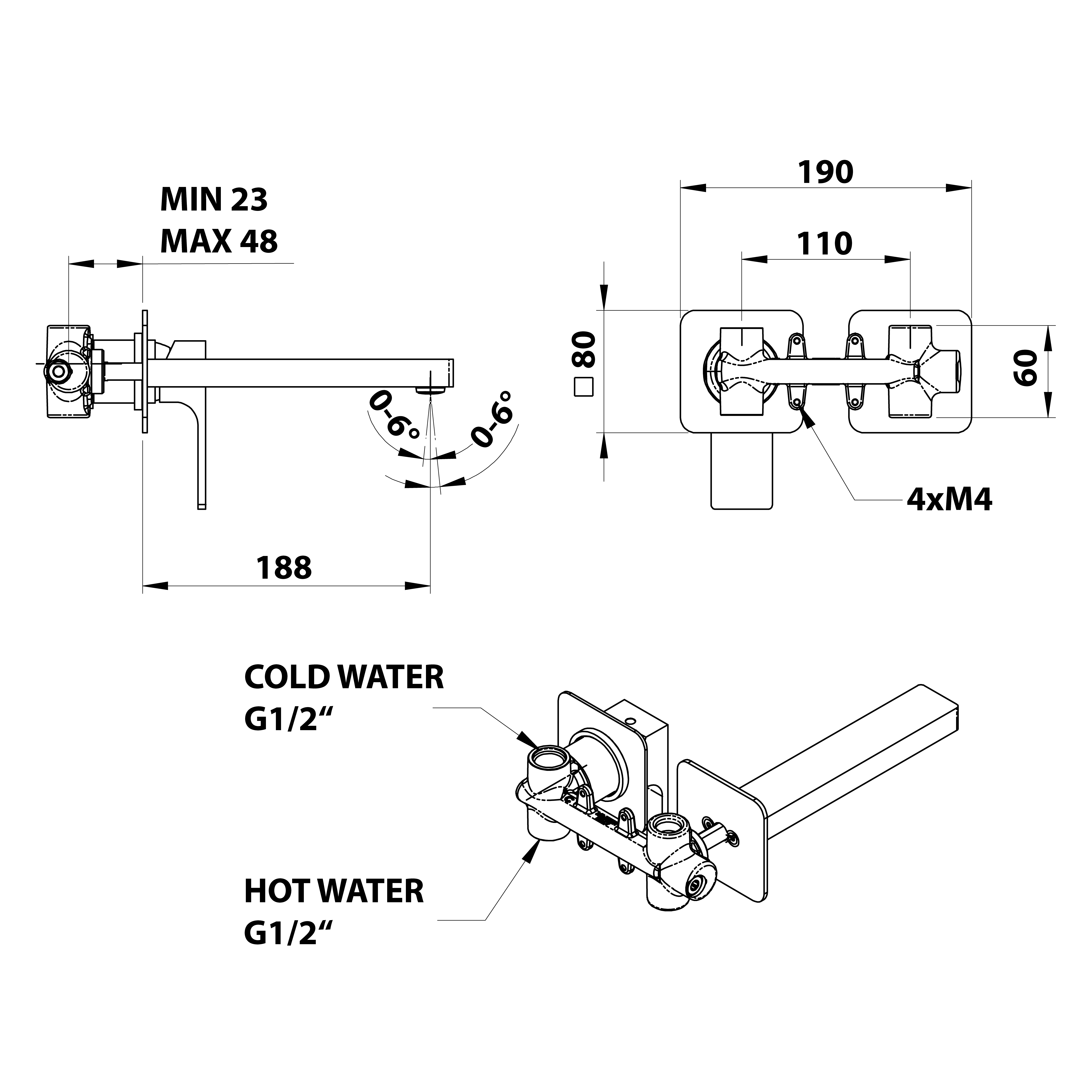 FT010/15 FORATA fali kádtöltő csaptelep, matt fekete