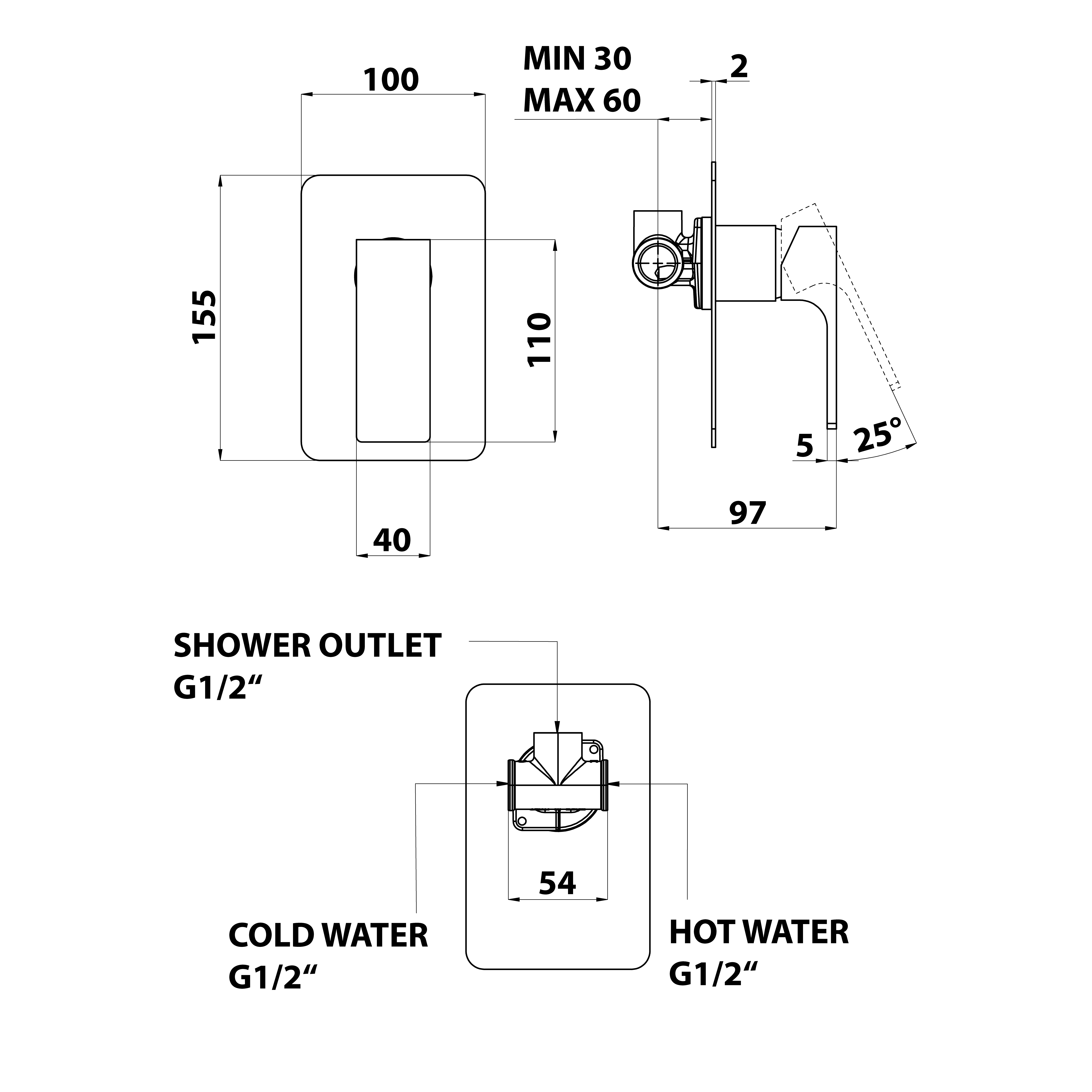 FT011/15 FORATA fali zuhanycsaptelep, matt fekete