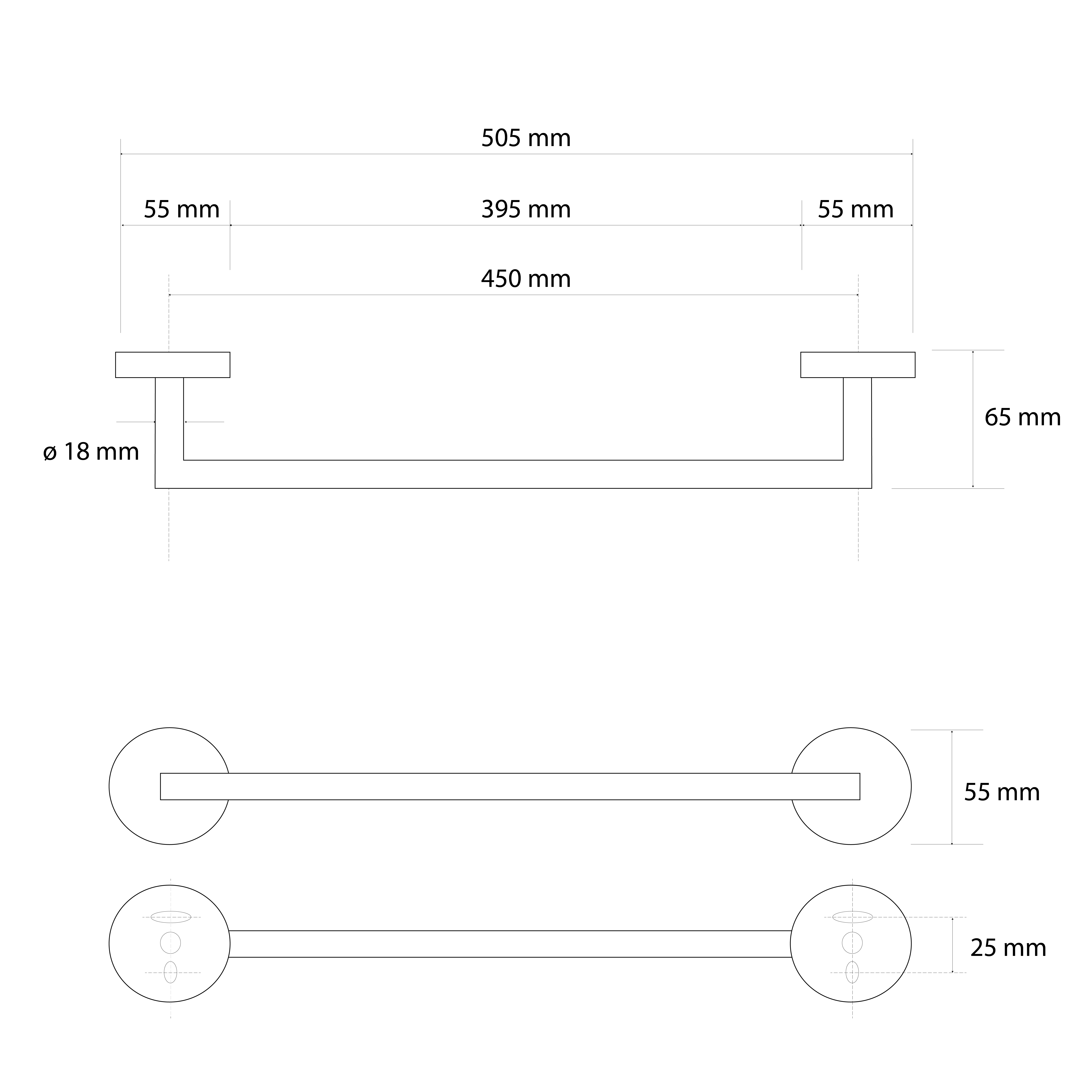 XH500B BEMETA DARK kapaszkodó, 470x65x90mm, fekete (104307770)