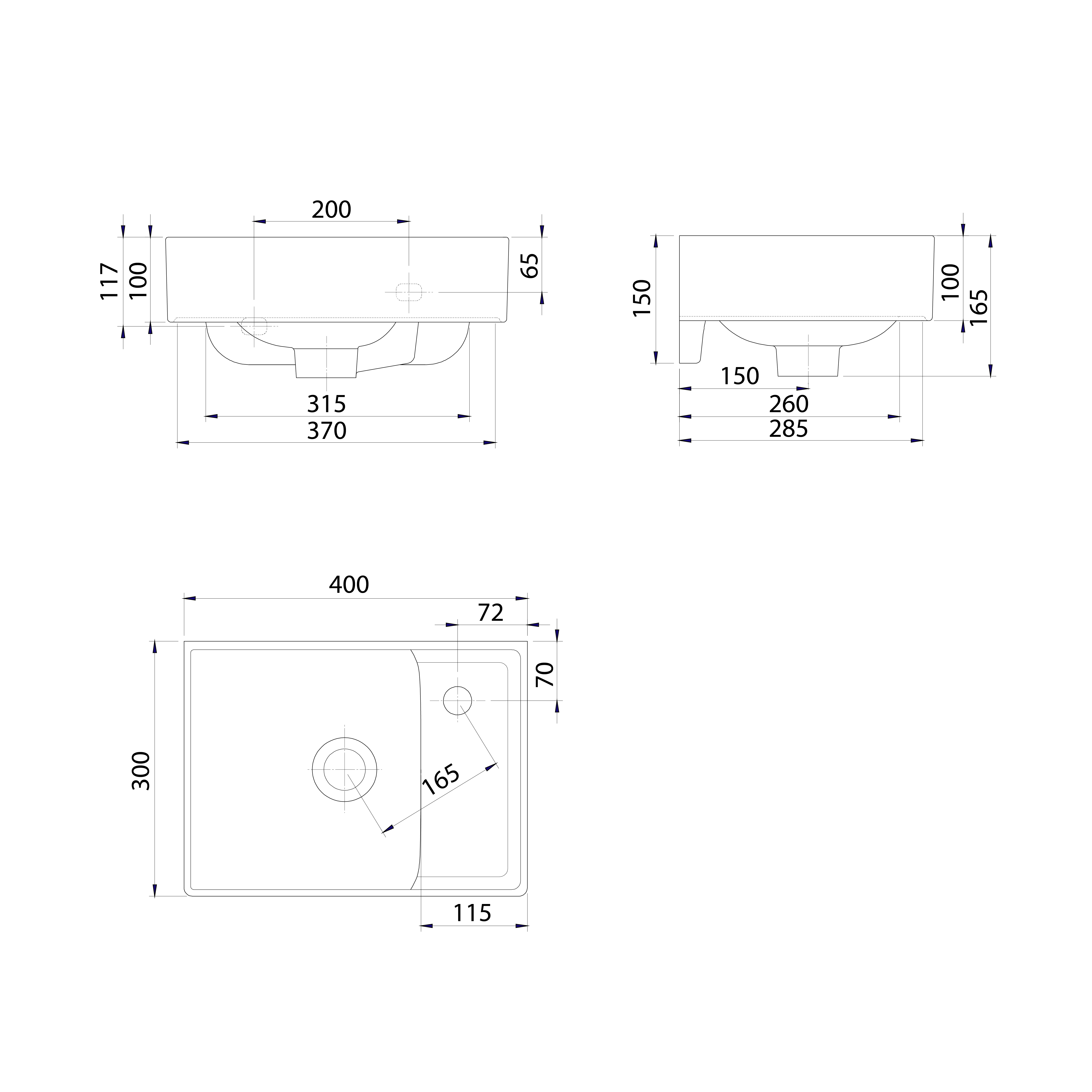 NUALI fali kerámiamosdó, 40x30cm (TU0128)