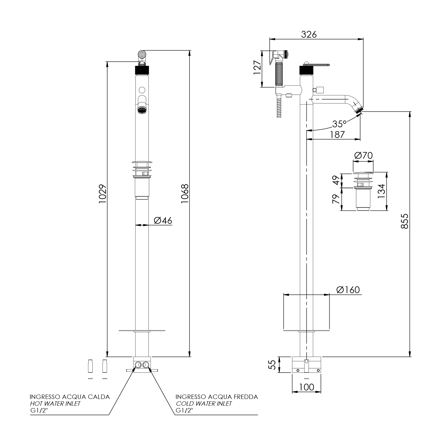 BB021 BEBÉ térbenálló kádtöltő csaptelep, króm