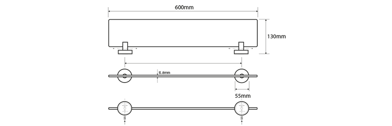 XS601 BEMETA NEO Üvegpolc, 600x55x130mm, inox/matt (104102045)