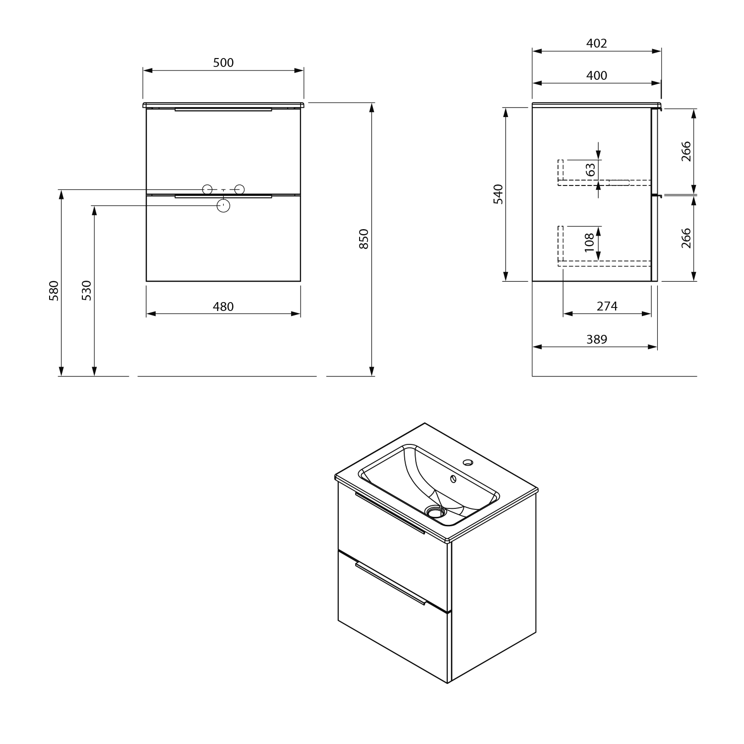 CIRASA Mosdótartó szekrény, 2 fiókkal, 48x54x39cm, fényes fehér (CR492-3030)