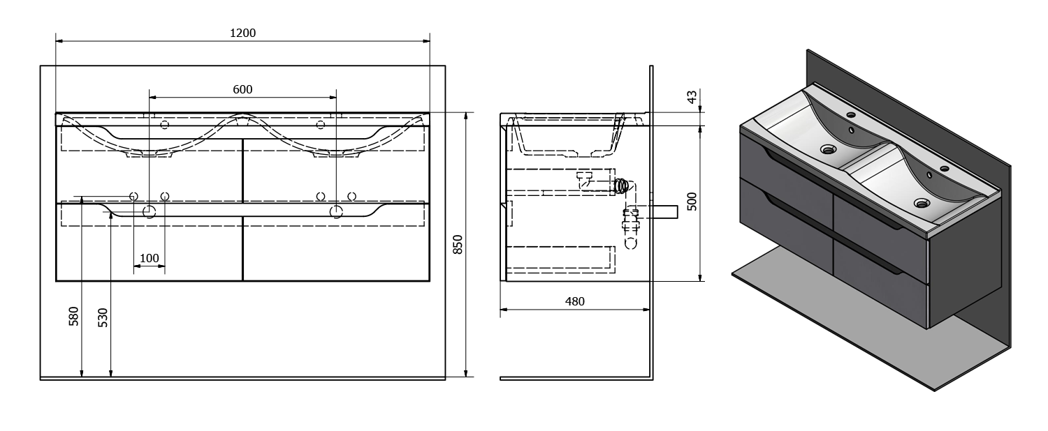 Furniture is equipped travels drawers with slow release and an automatic closing movement drawers. No more noisy closing.