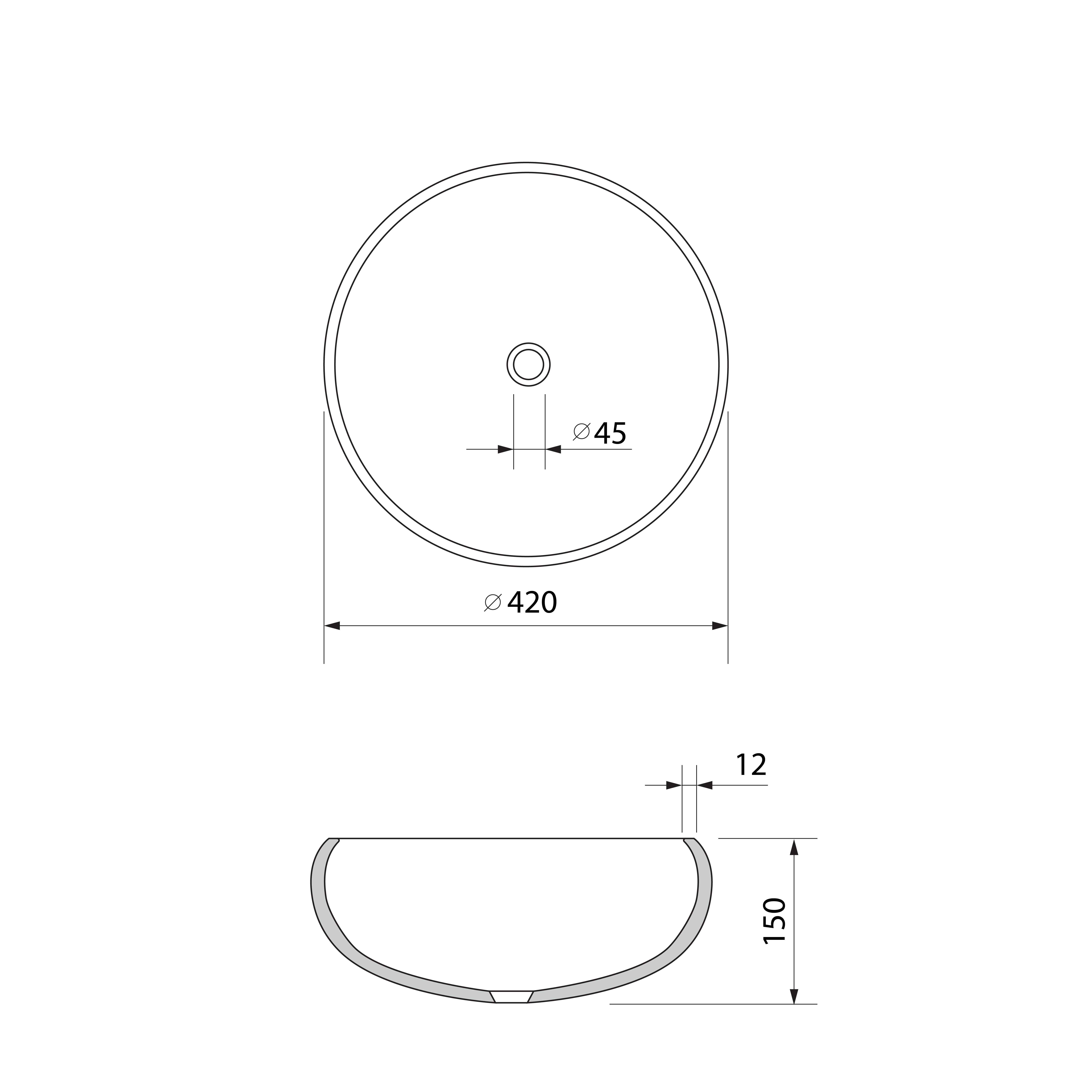 2501-16 BEAUTY SKIN üvegmosdó, átm:42x14cm, metál szürke