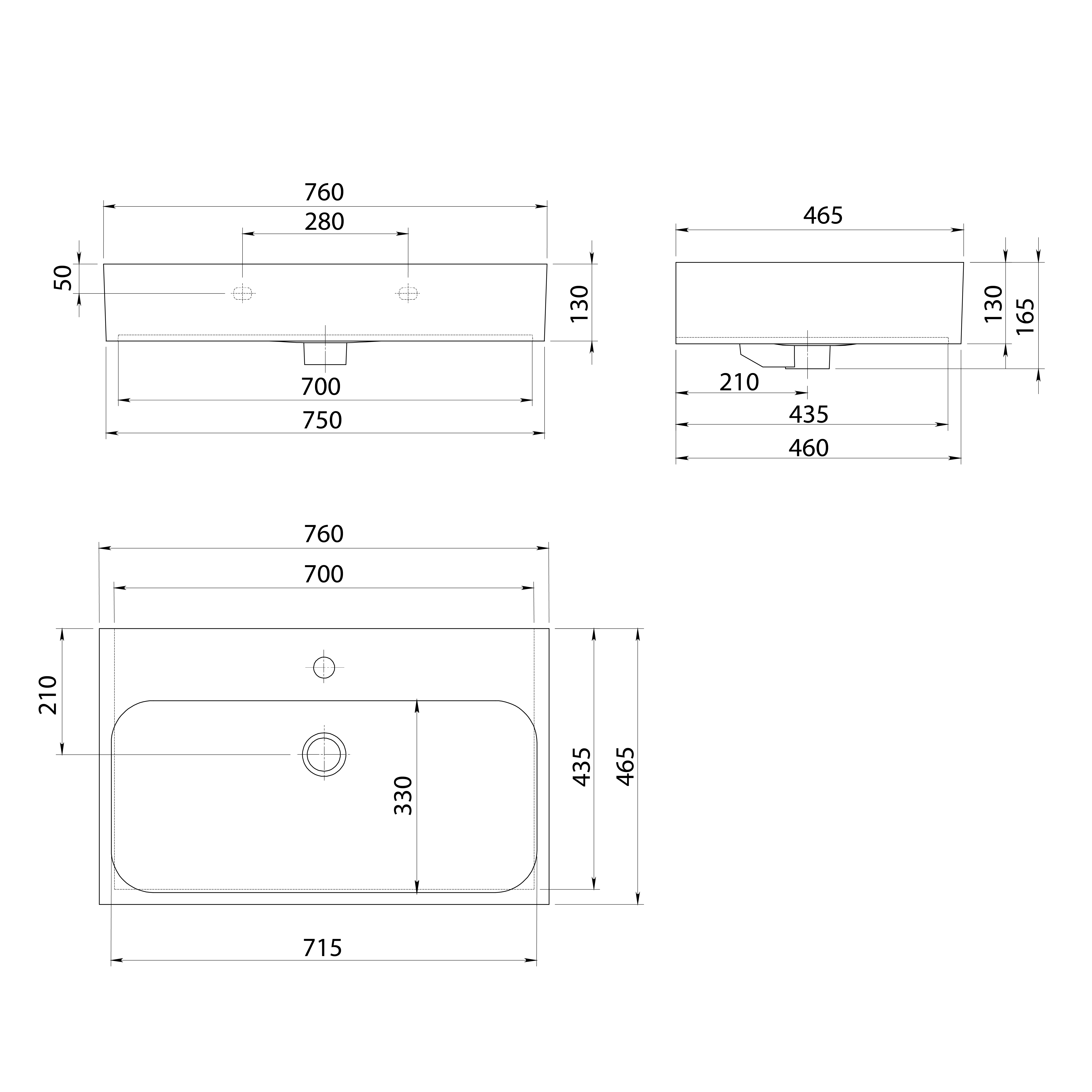 TORIDI kerámiamosdó, 76x46,5cm, matt fekete (TU0226B)