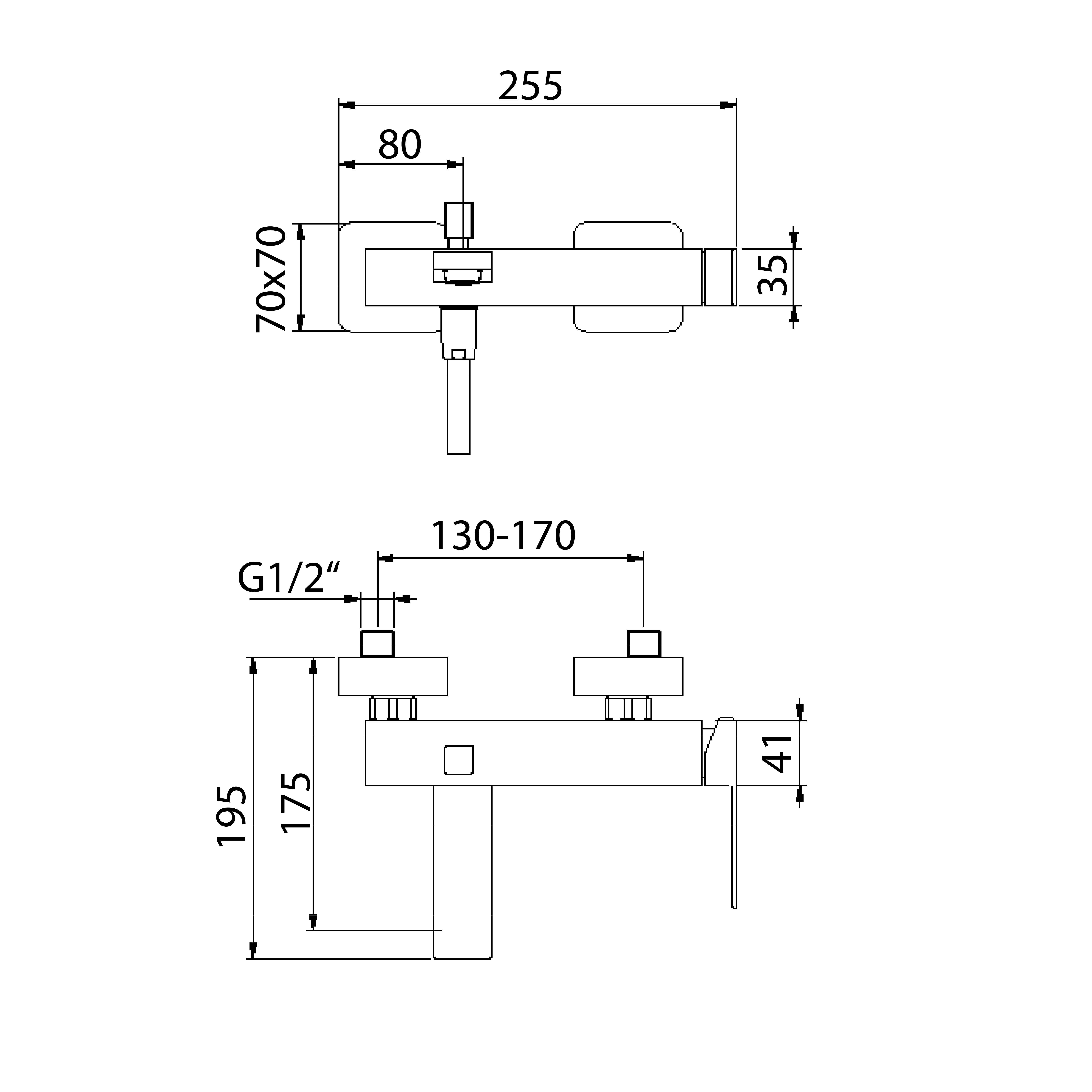 1102-42B SPECTRE falsík alatti zuhanycsaptelep, 2-irányú váltóval, zuhanyszett nélkül, matt fekete