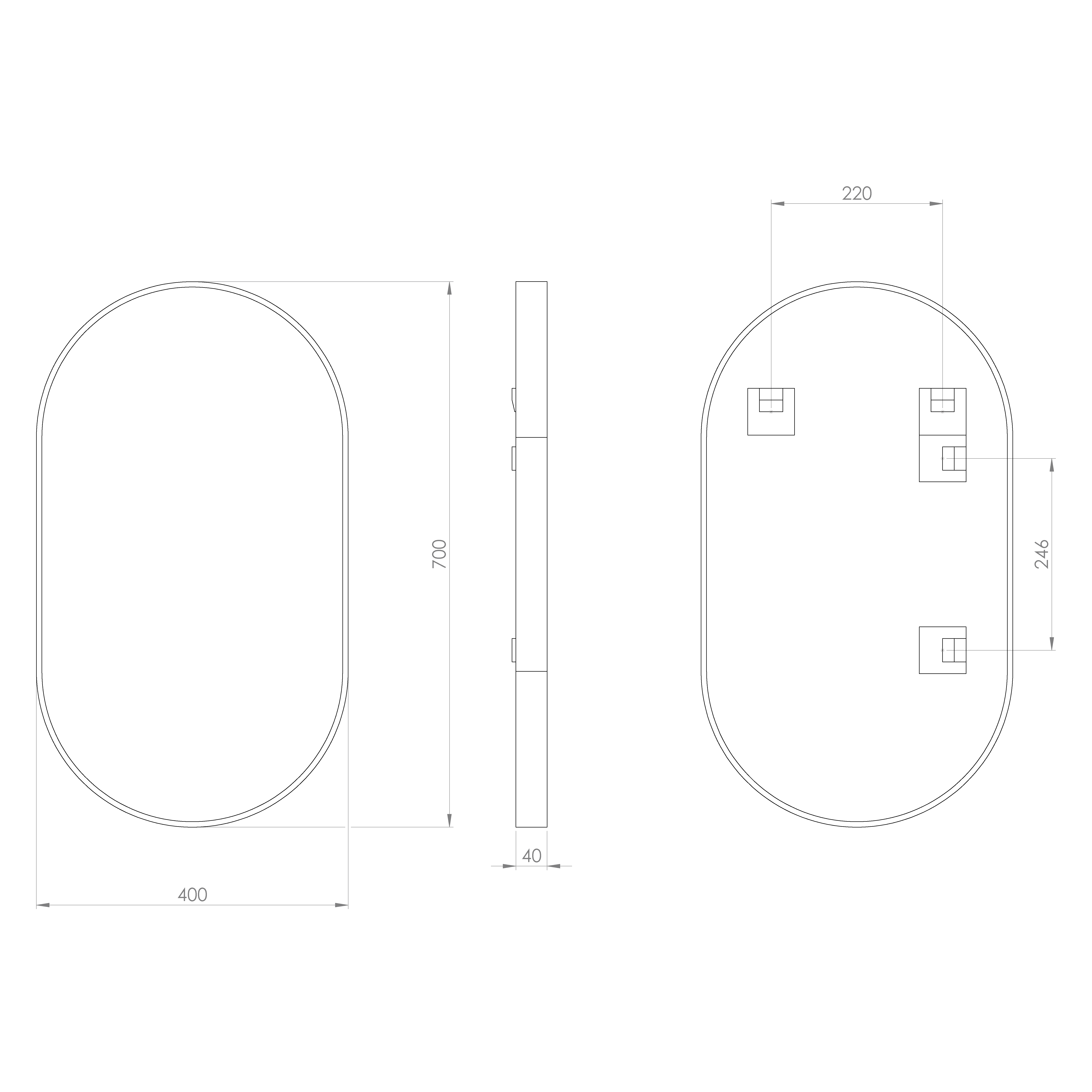 AV400 AVONA ovális keretes tükör, 40x70cm, matt fekete