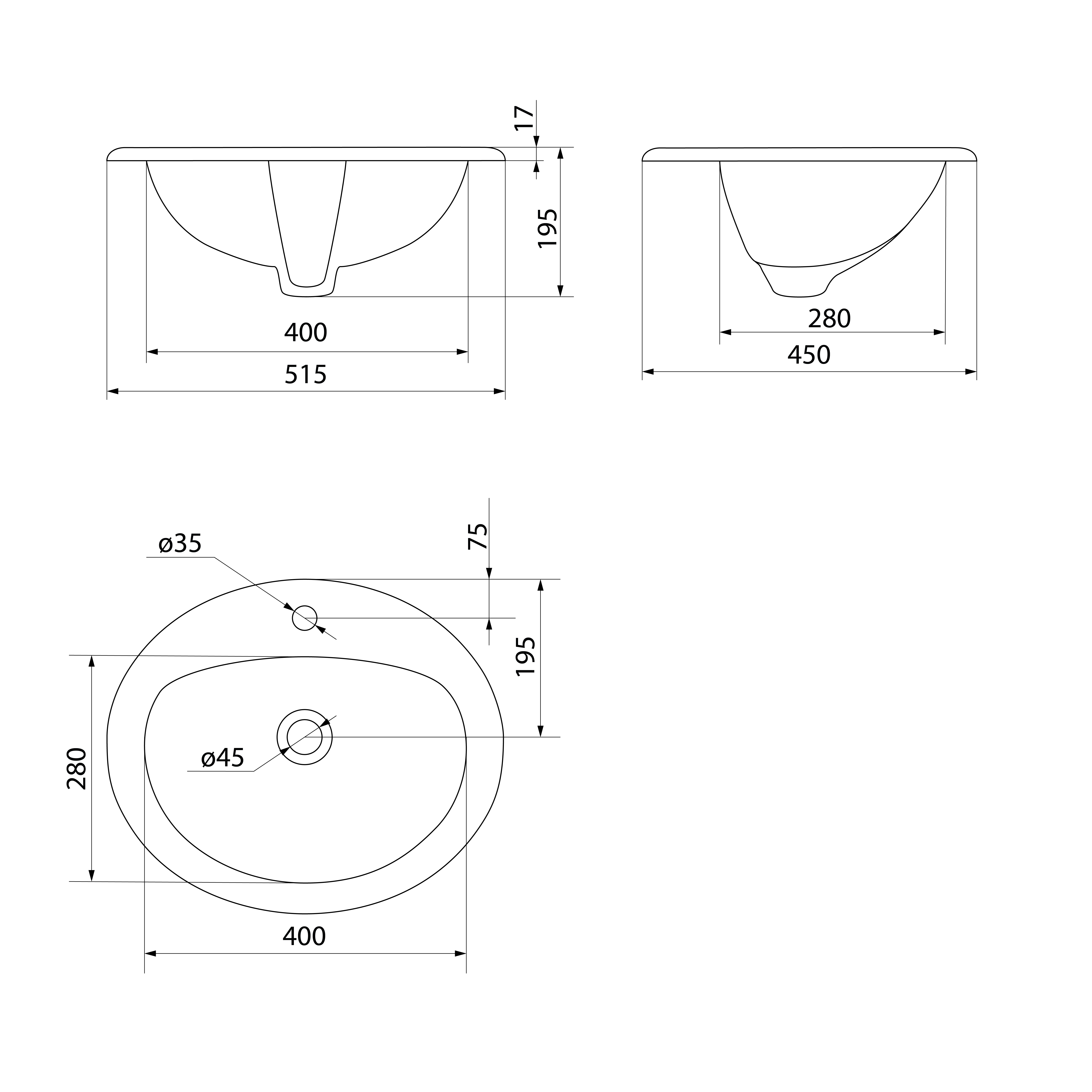 AQUALINE pultba süllyeszthető kerámiamosdó, 51,5x45cm (55227)
