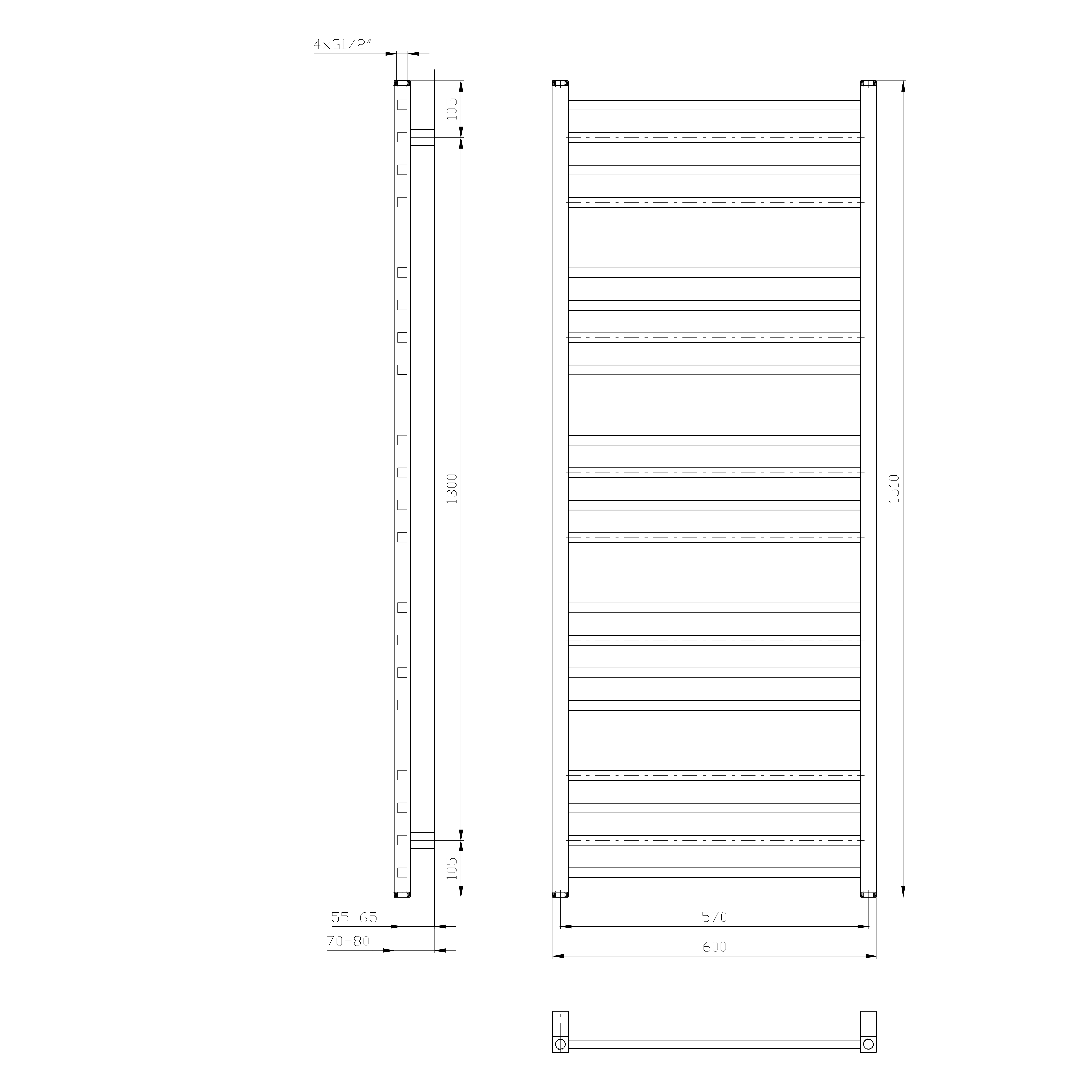 0411-02 METRO fürdőszobai radiátor, 600x1530mm, króm