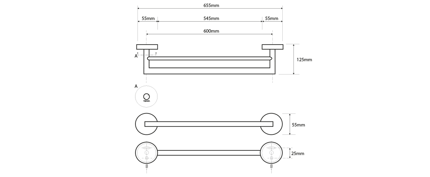 XS402 BEMETA NEO Törölközőtartó, 655x55x65mm, inox/matt (104204045)