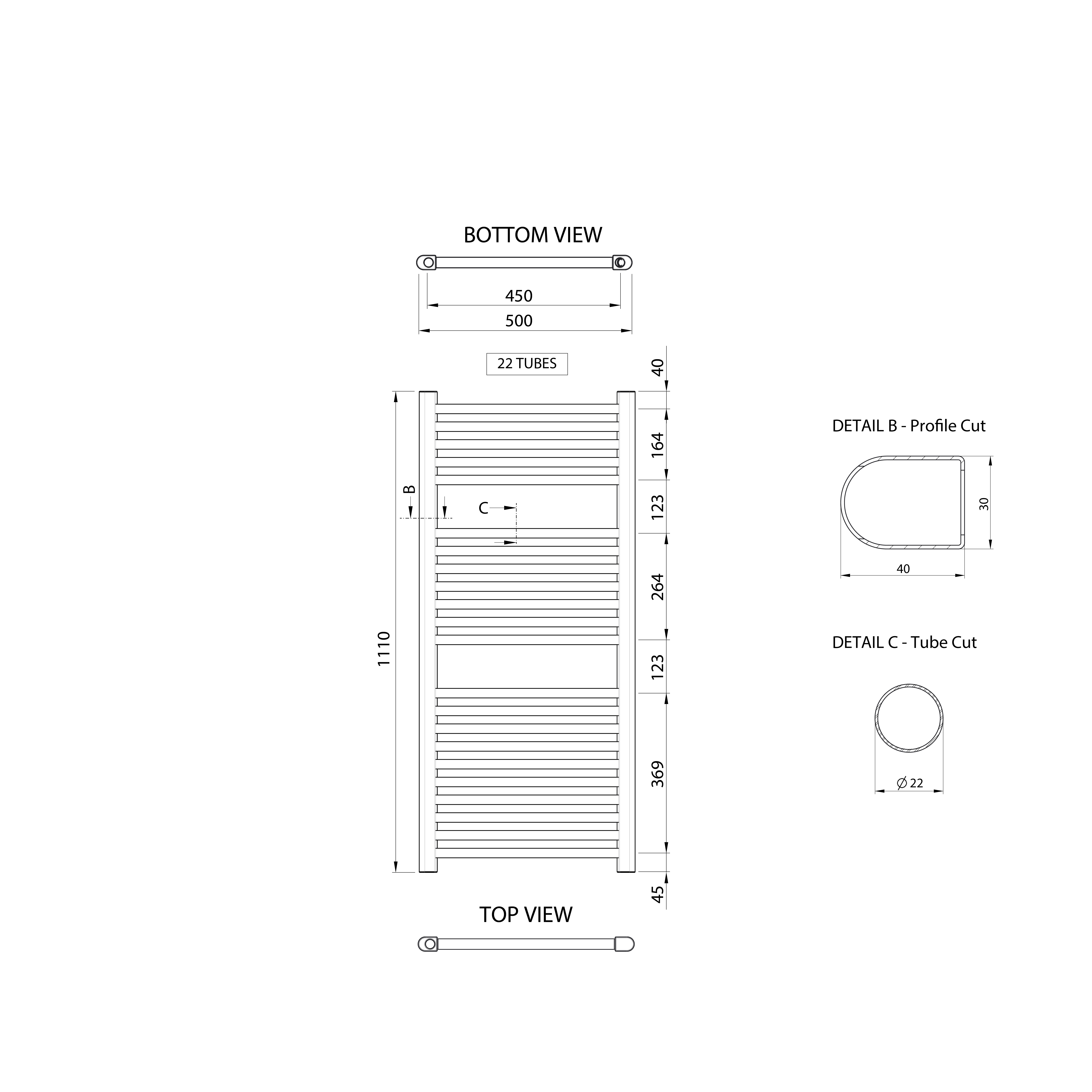 Towel rail with a 50 mm connection spacing