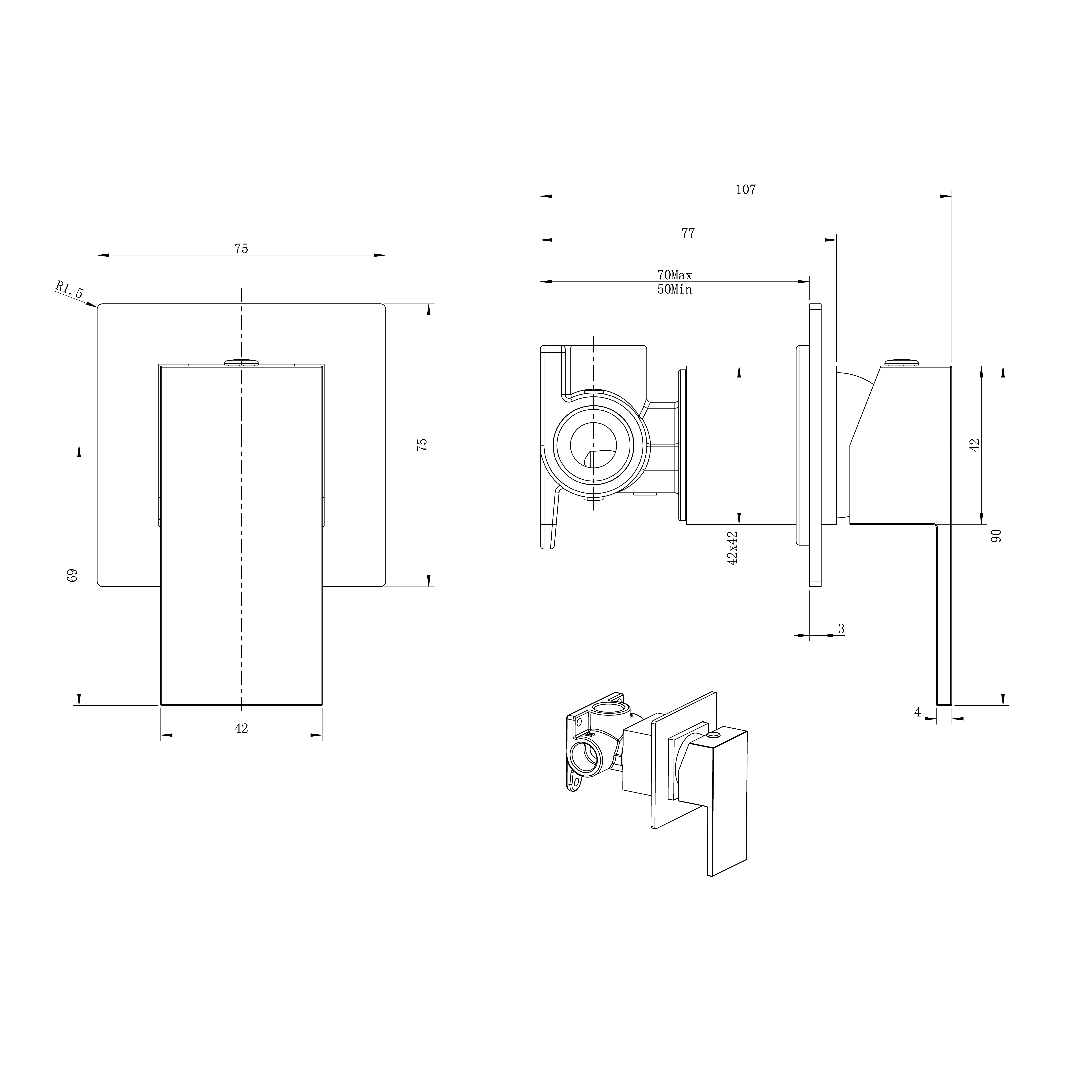 1102-76 SPECTRE falsík alatti zuhanycsaptelep, 1-irányú váltóval, zuhanyszett nélkül, króm