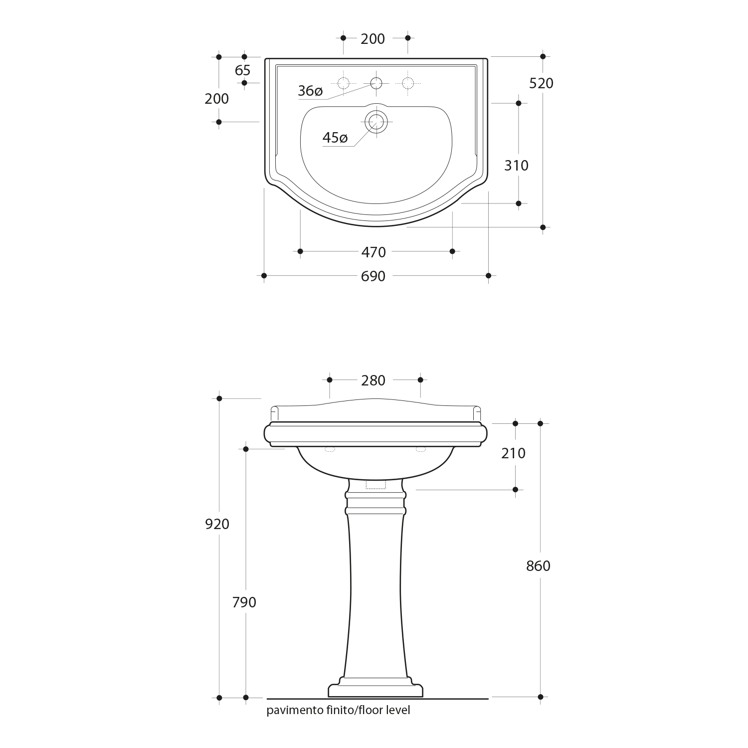 104601-3 KERASAN RETRO kerámiamosdó, 3 furattal, 69x52cm