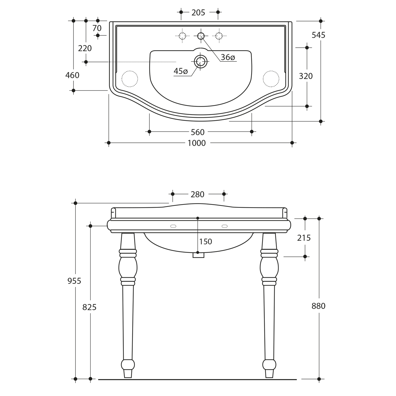 105001-3 KERASAN RETRO kerámiamosdó 3 furattal, 100x54,5cm
