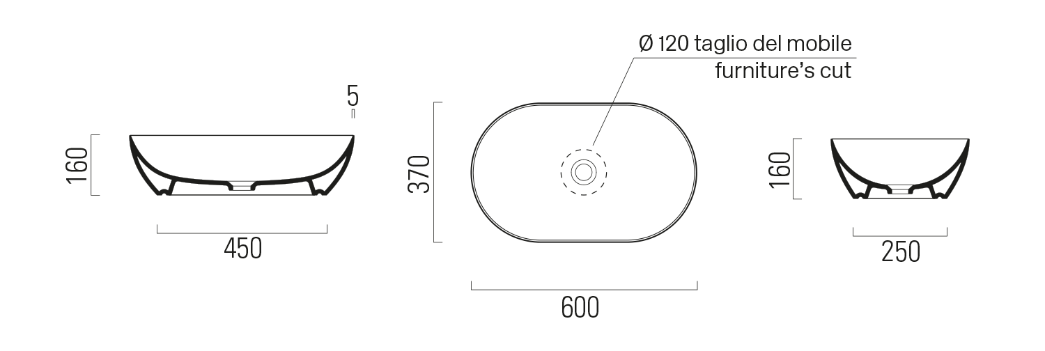 883411 GSI PURA kerámiamosdó, pultra helyezhető, 60x16x37cm, ExtraGlaze (1db)