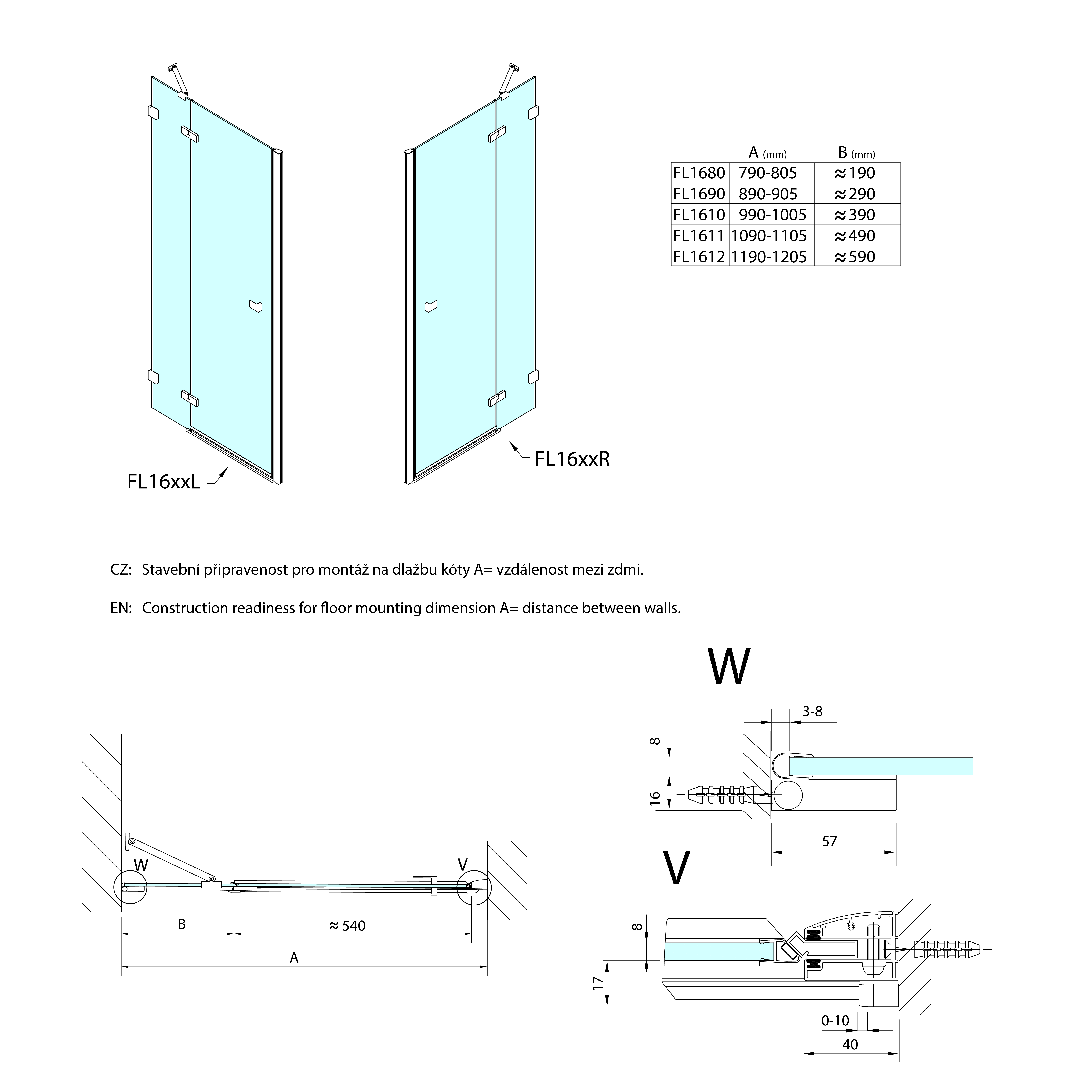 FL1280R POLYSAN FORTIS EDGE nyílóajtó sarokbelépéshez, 800mm, transzparent üveg