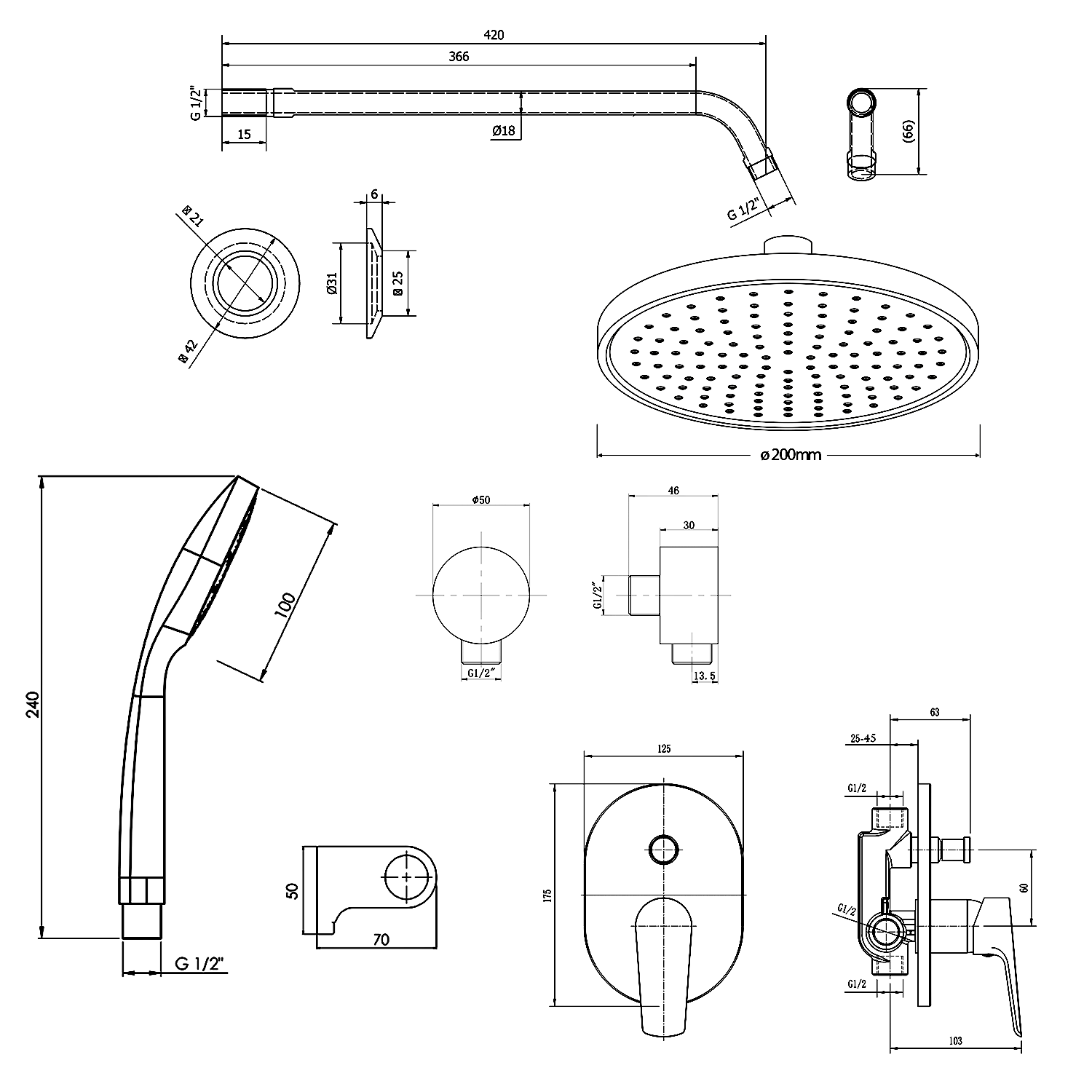 SC121 AQUALINE Fejzuhany, 200mm, króm (1db)