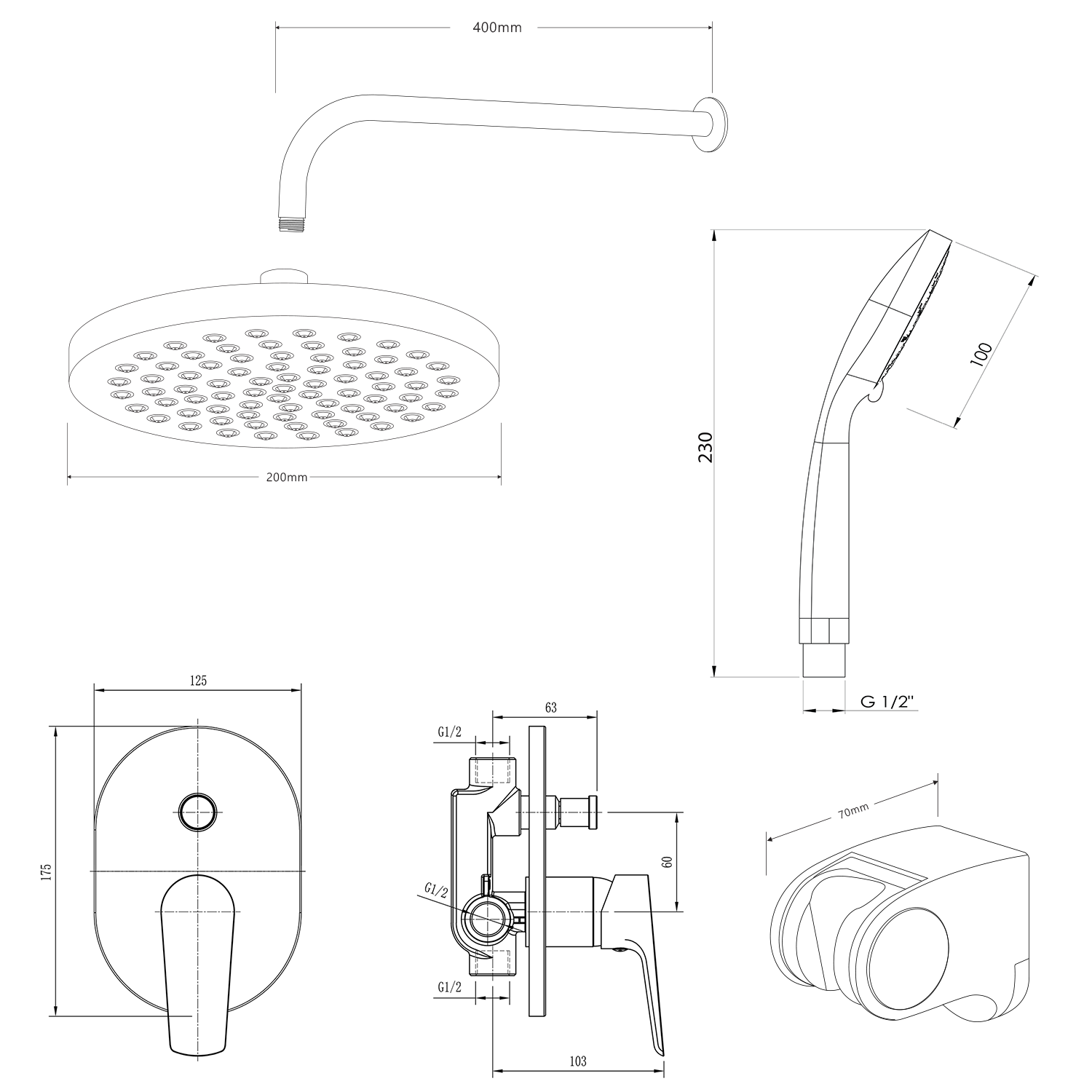 LT744 LOTTA falba süllyesztett zuhanycsaptelep, 2-irányú váltóval, zuhanyszettel, fejzuhannyal, króm