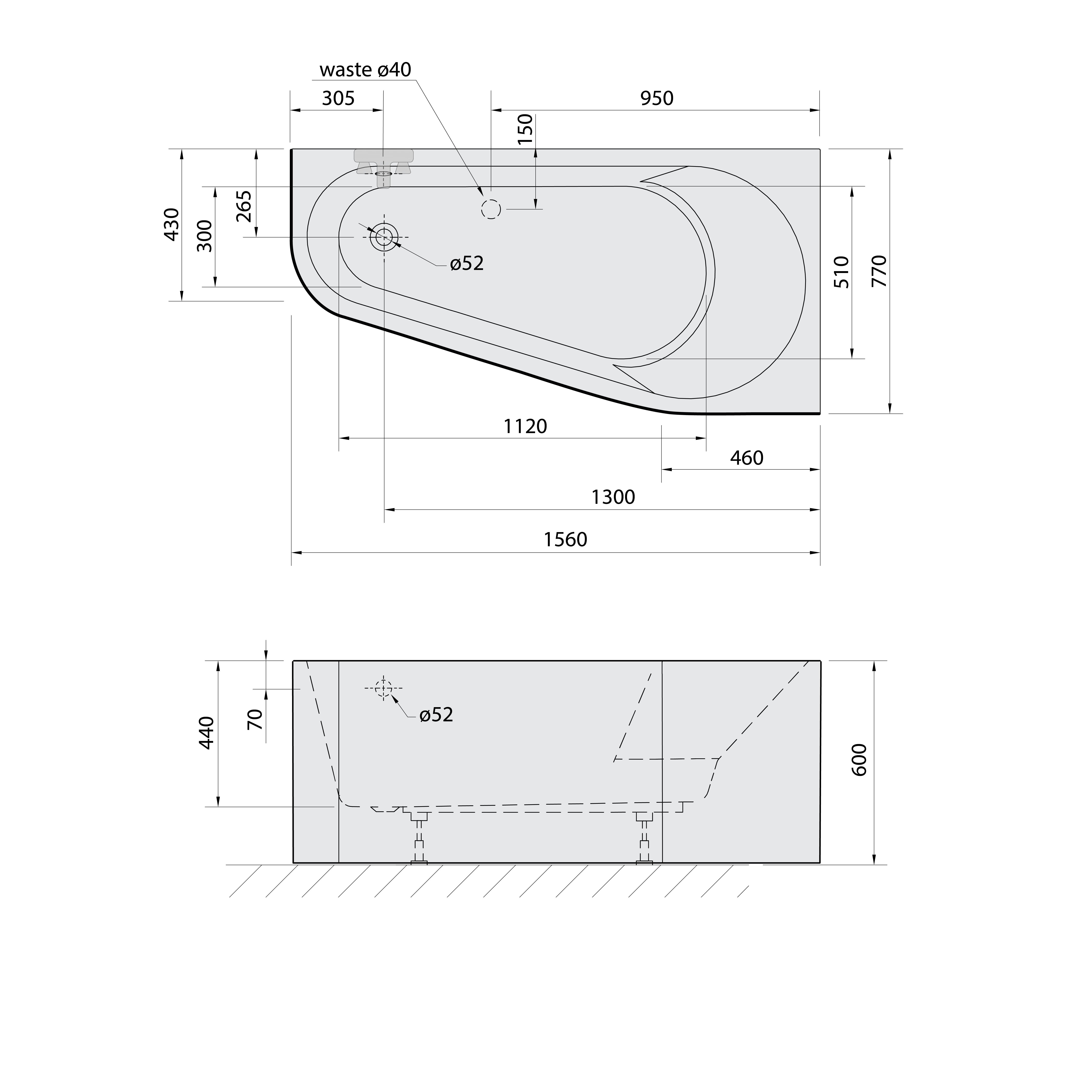 33611M.30 POLYSAN ASTRA L MONOLITH aszimmetrikus kád, 160x75x60cm, szürke