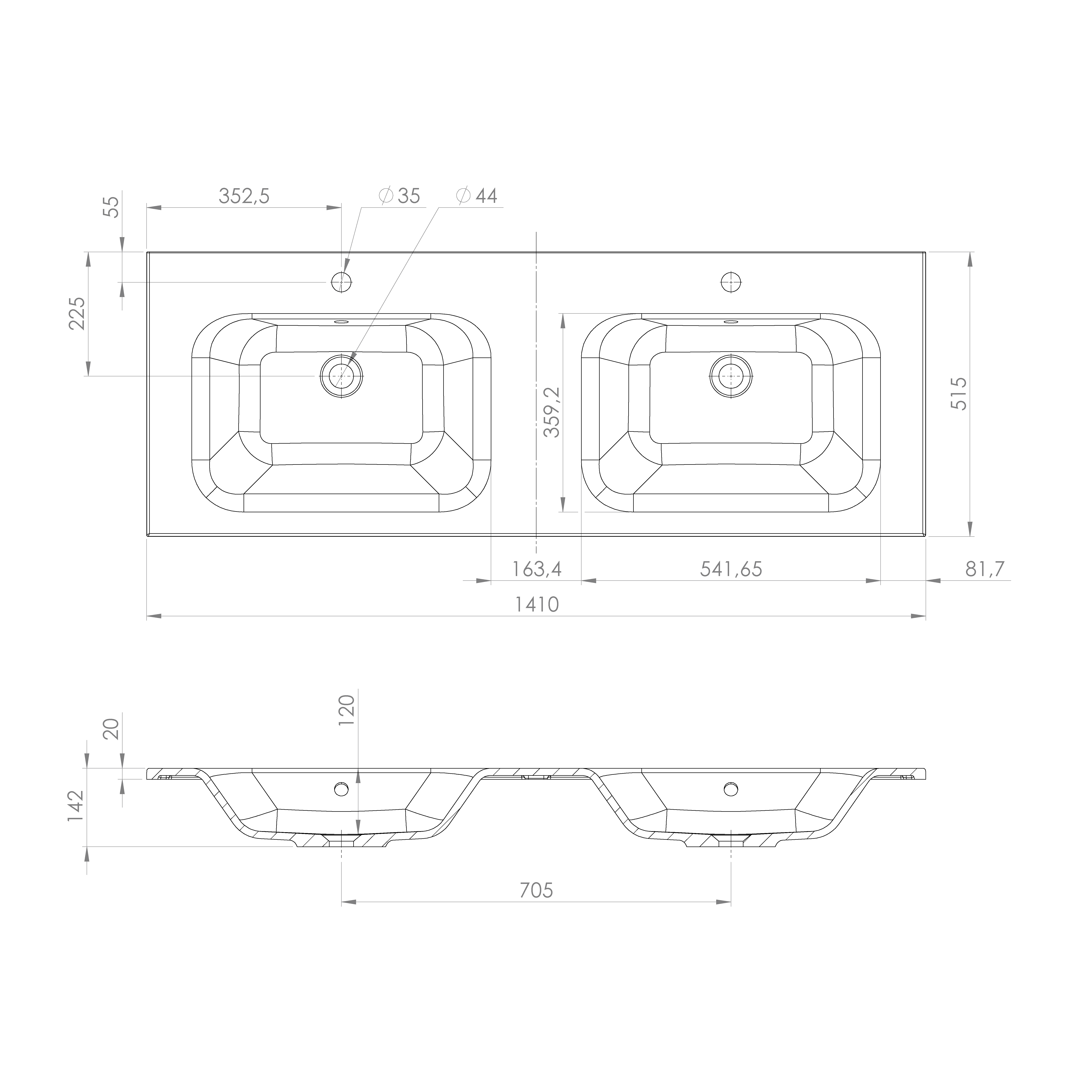 ARECA öntöttmárvány duplamosdó, 141x51,5cm (AC141)