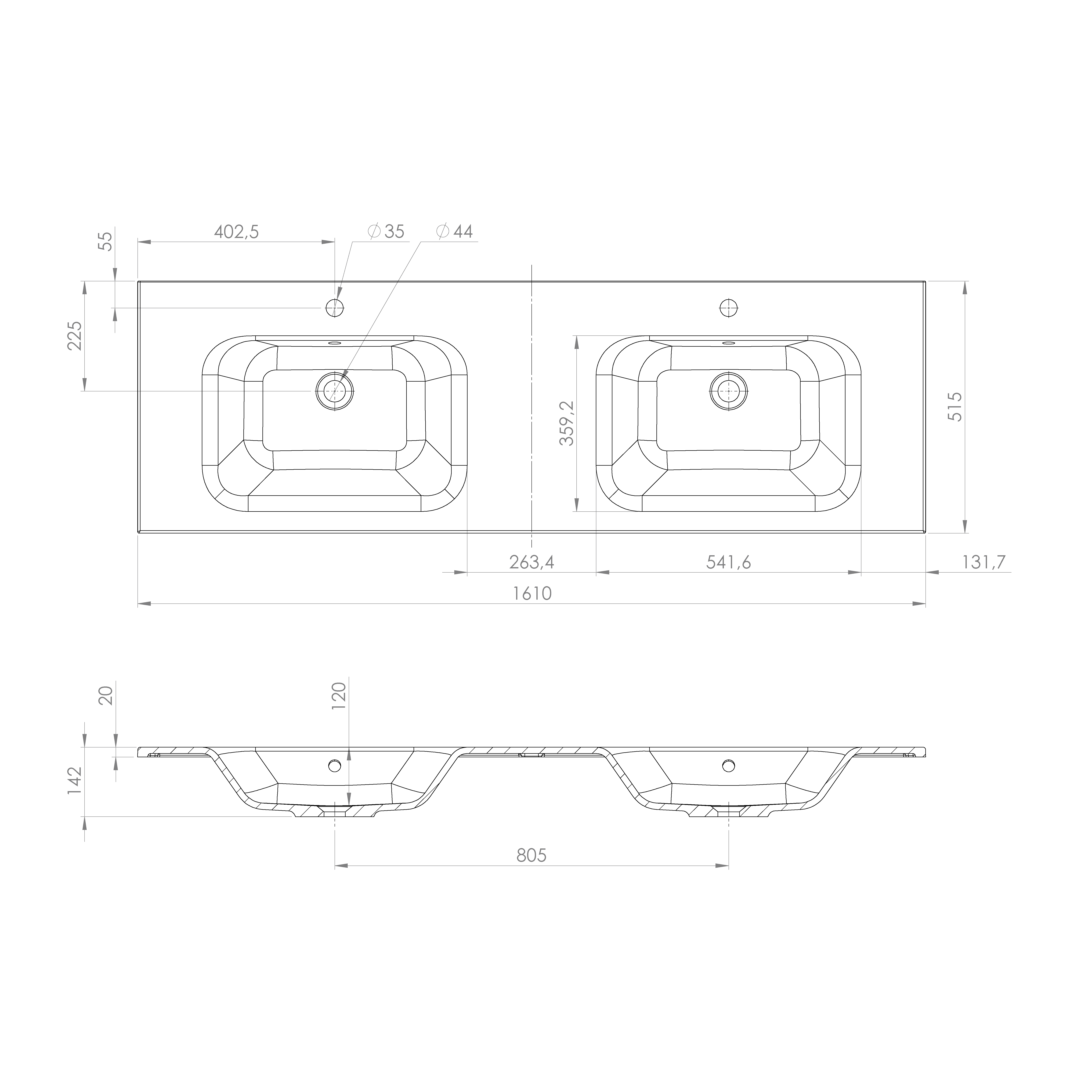 ARECA öntöttmárvány duplamosdó, 161x51,5cm (AC161)
