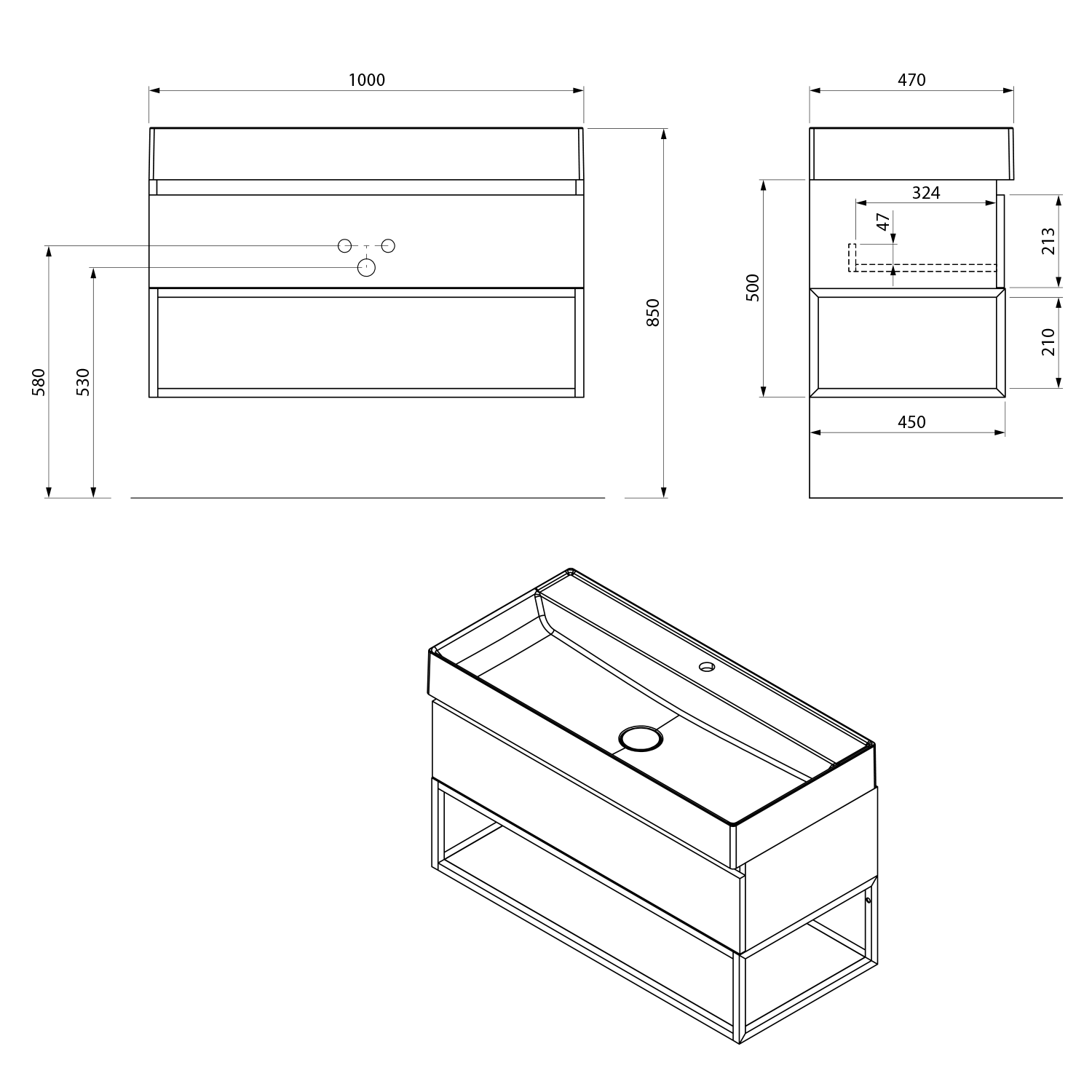 TW100 TWIG öntöttmárvány mosdó, 100x47cm