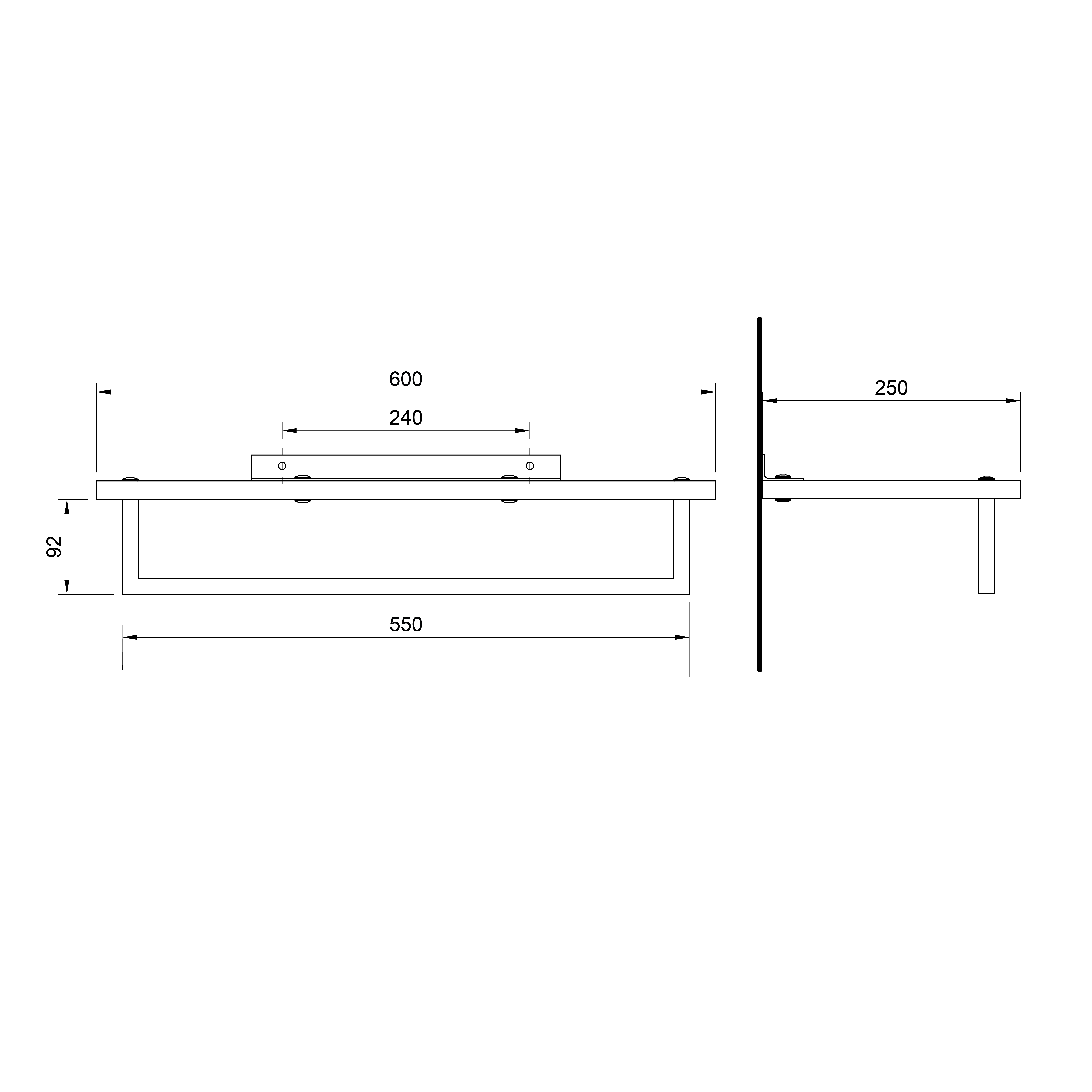 SKA polc törölközőtartóval, 600x250mm, matt fehér (SKA385W)