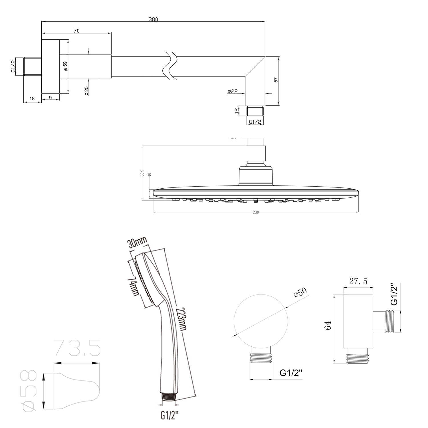 621.300.1 BRUCKNER fejzuhany, 230mm, ABS/króm (1db)