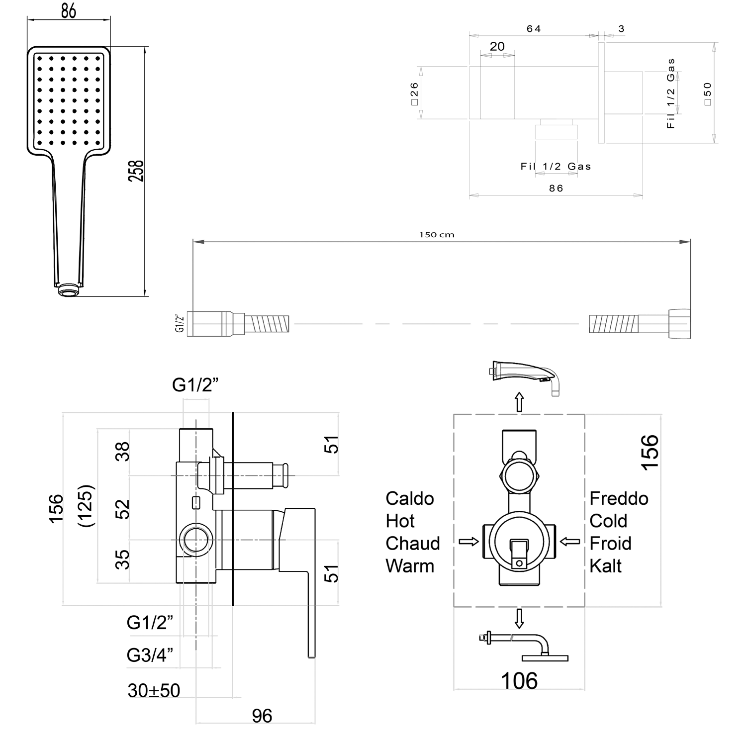 1102-46-01 LATUS falbasüllyesztett zuhanycsaptelep bidézuhannyal