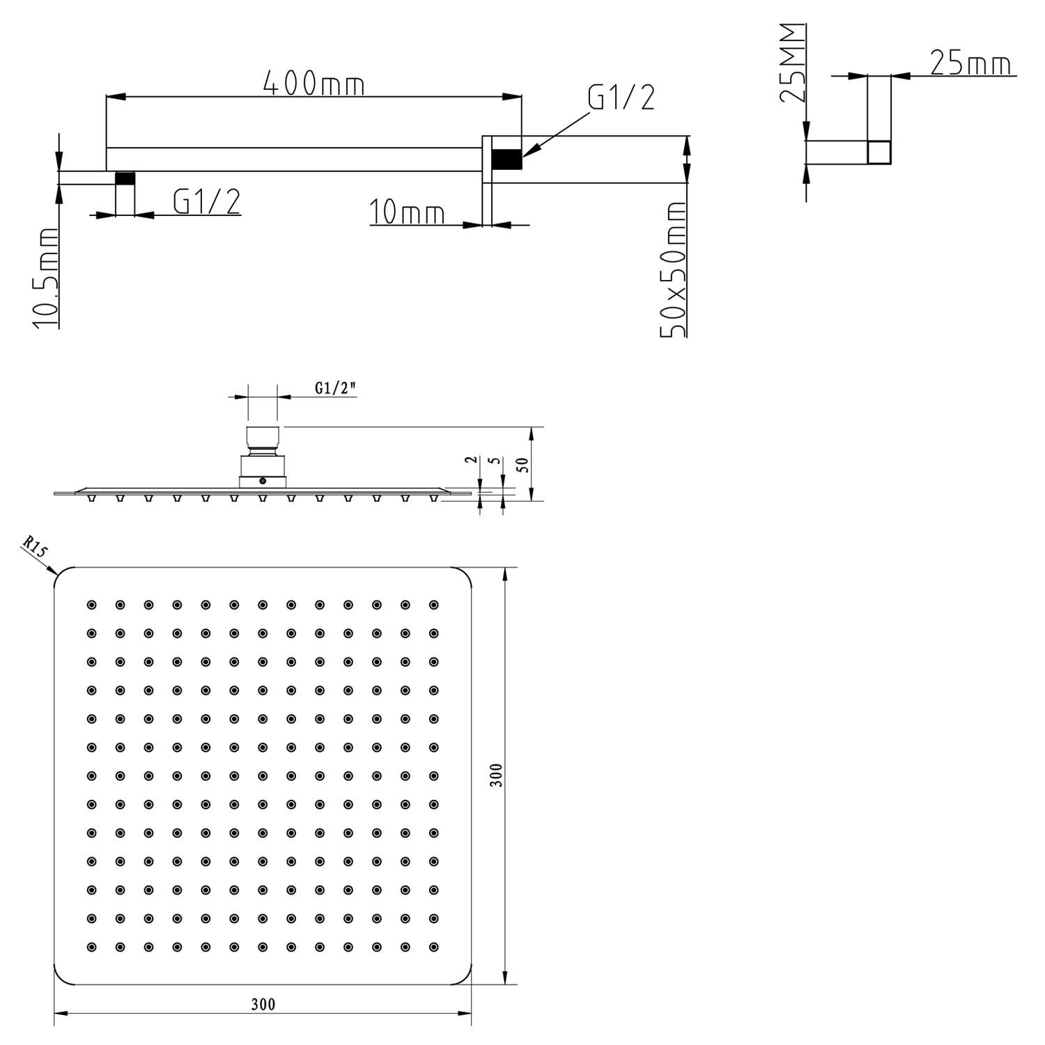 SL101 fejzuhany, 300x300mm, matt fekete (1db)