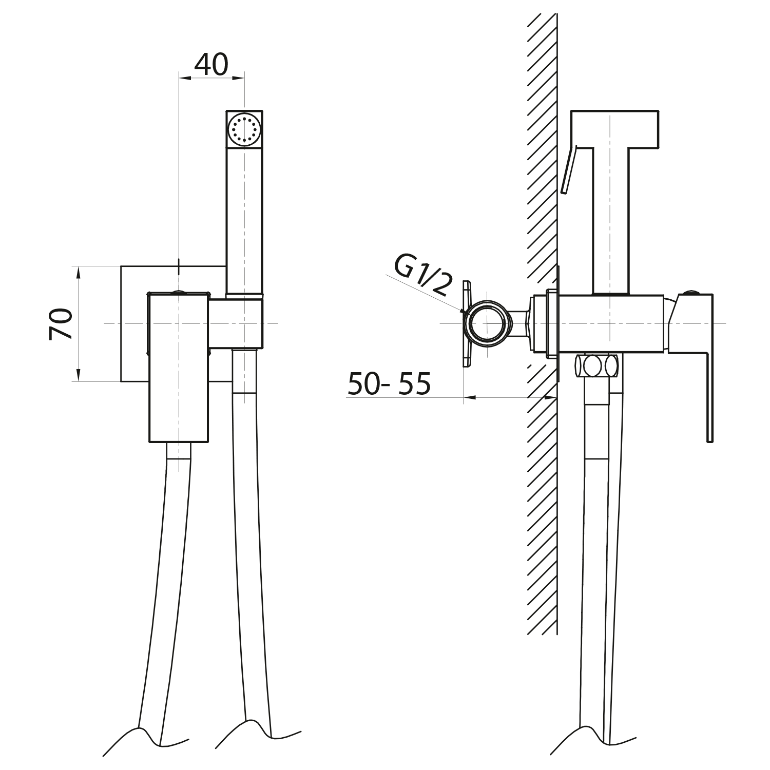 CM040 CUBEMIX falbasüllyesztett csaptelep bidézuhannyal, króm