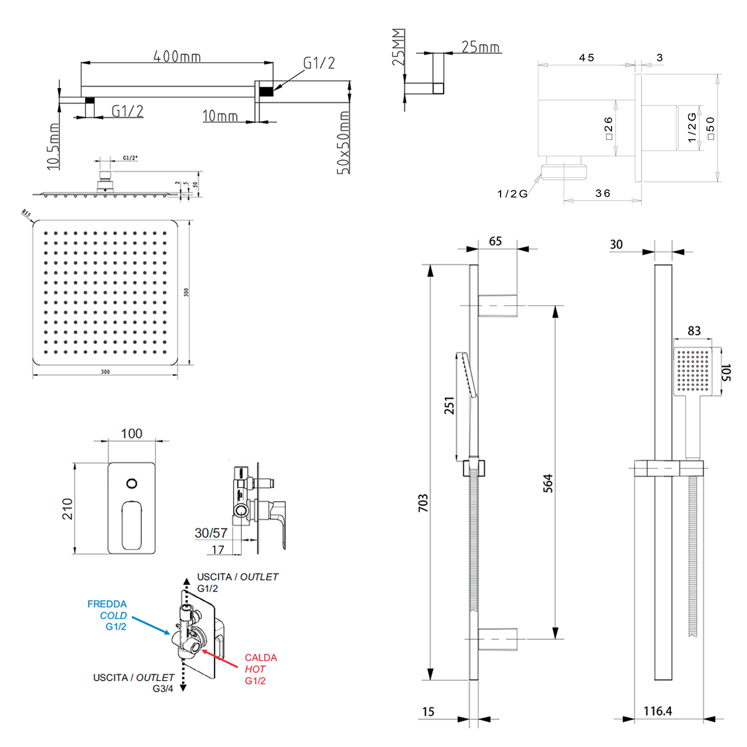 PY42-01 SPY falba süllyesztett zuhanycsaptelep, 2-irányú váltóval, zuhanyszettel, fejzuhannyal, króm