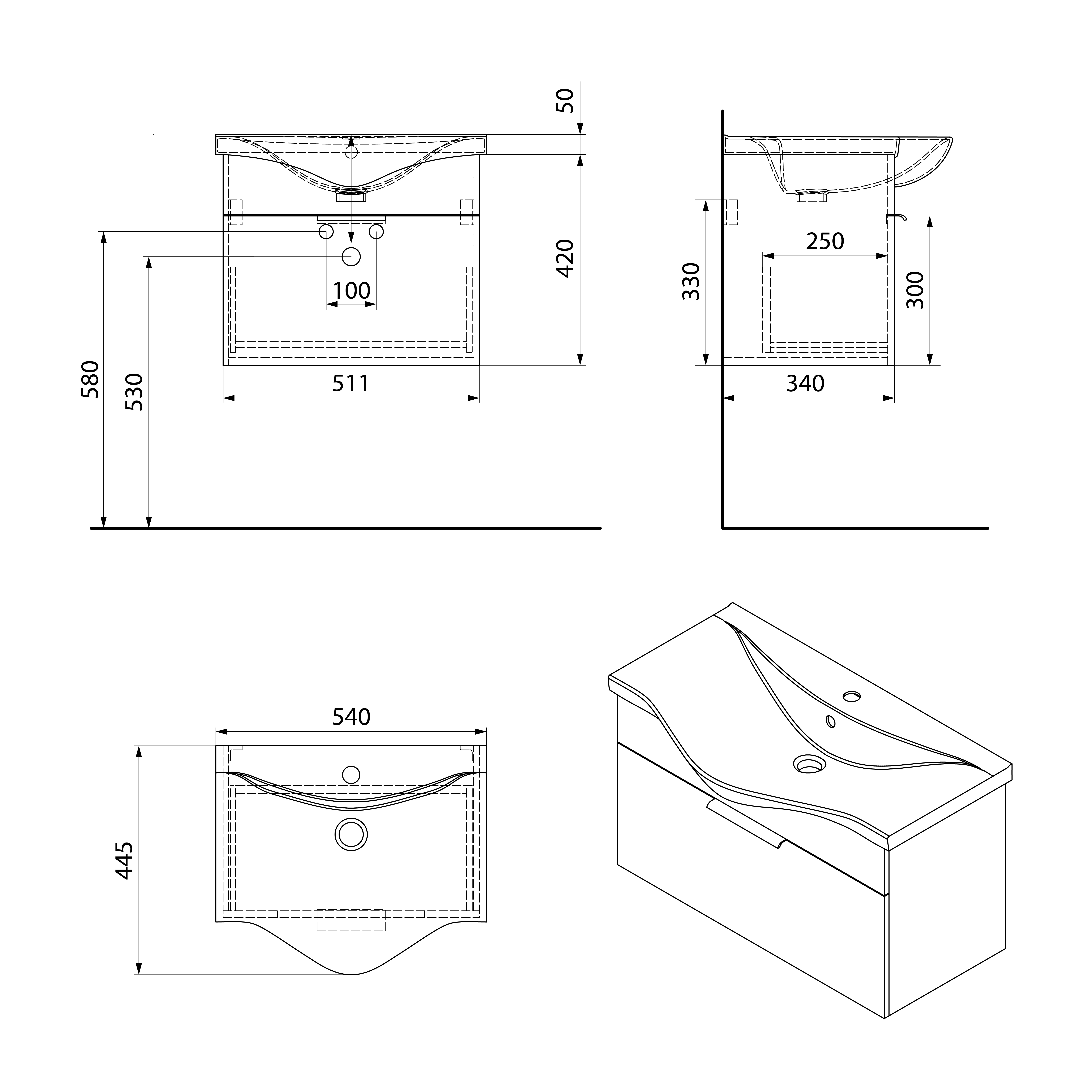 AK255 AQUALINE AKIRA mosdótartó szekrény fogantyú nélkül, 51,1x42x34cm
