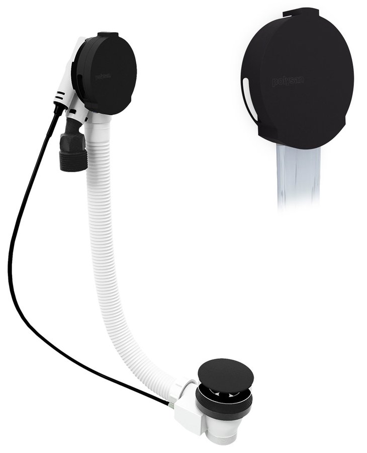 POLYSAN MARBLE kád le- és túlfolyó, kádtöltővel, bovdenes, 800mm, matt fekete (11052.21)