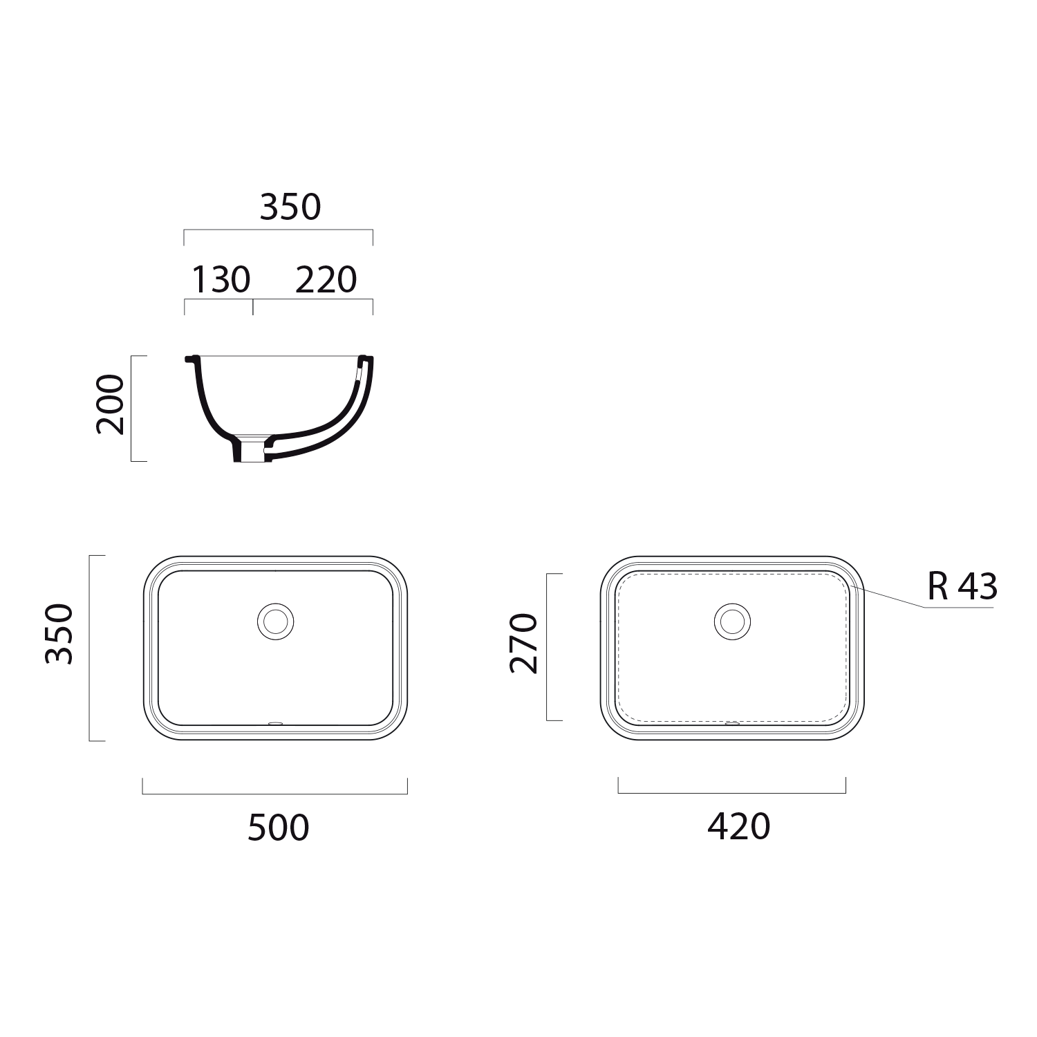 88279011 GSI PURA SLIM kerámiamosdó, 62x48cm, csiszolt alsó élekkel, furat nélkül, ExtraGlaze