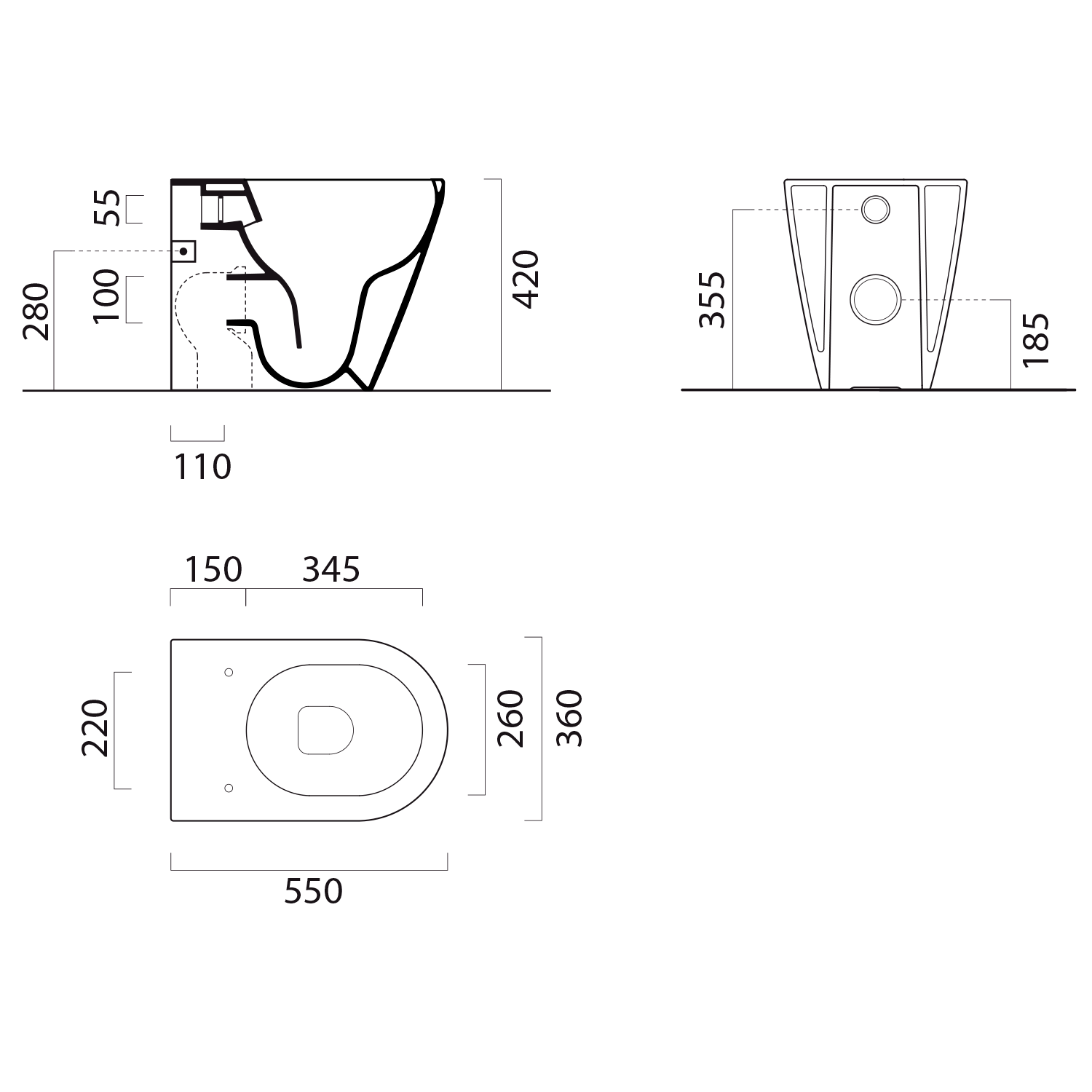 The shape of the bowl allows for efficient and effective flushing with less water, thus saving the environment and water costs.Economical flushing can be used with a dual flush cistern, whose drain valve allows the water volume to be set from 2 liters for a small flush and 4 liters for a large flush.