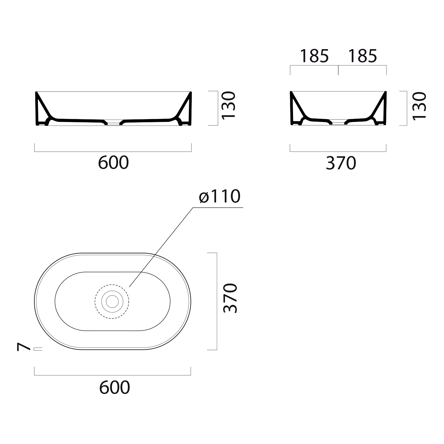94229026 GSI KUBE X kerámiamosdó, csiszolt alsó szélekkel, 80x47cm, furat nélkül, matt fekete