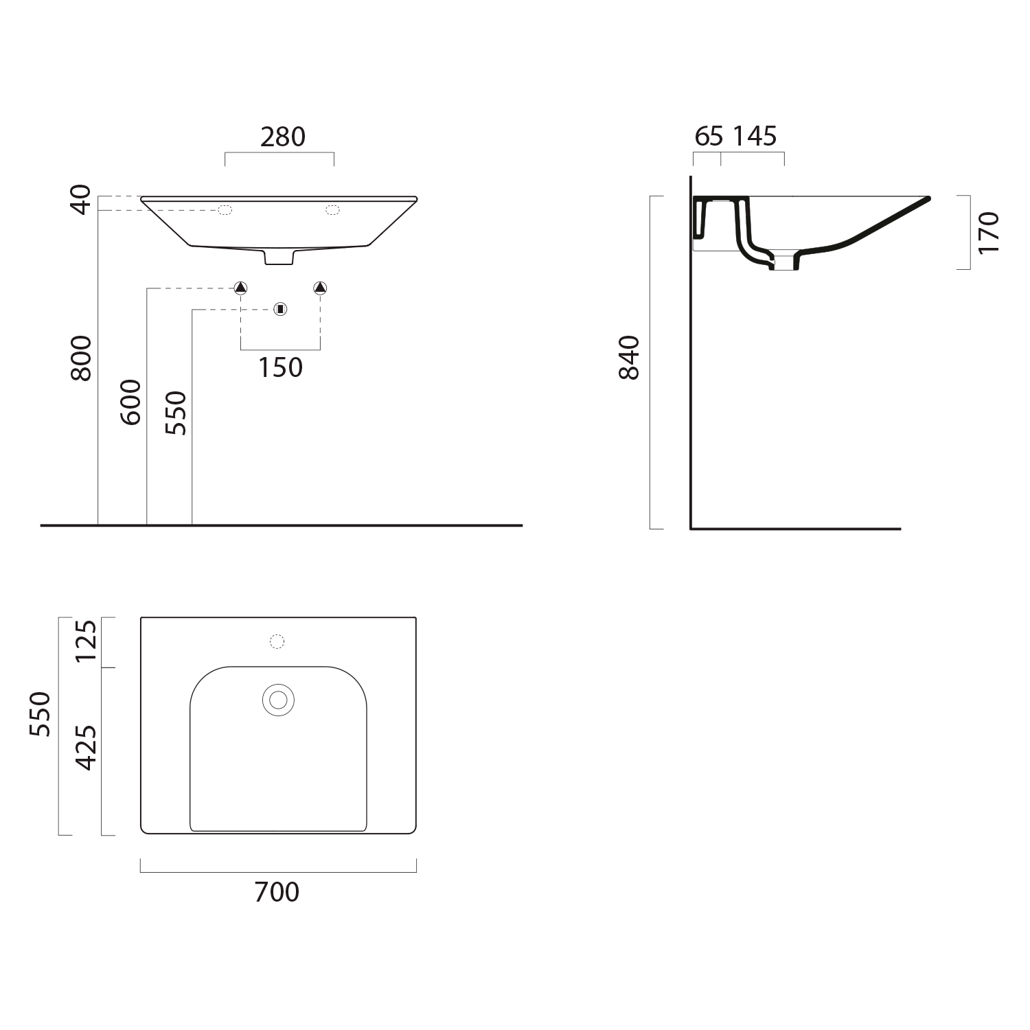 7633026 GSI COMMUNITY kerámiamosdó, furat nélkül túlfolyóval, 70x55cm, matt fekete