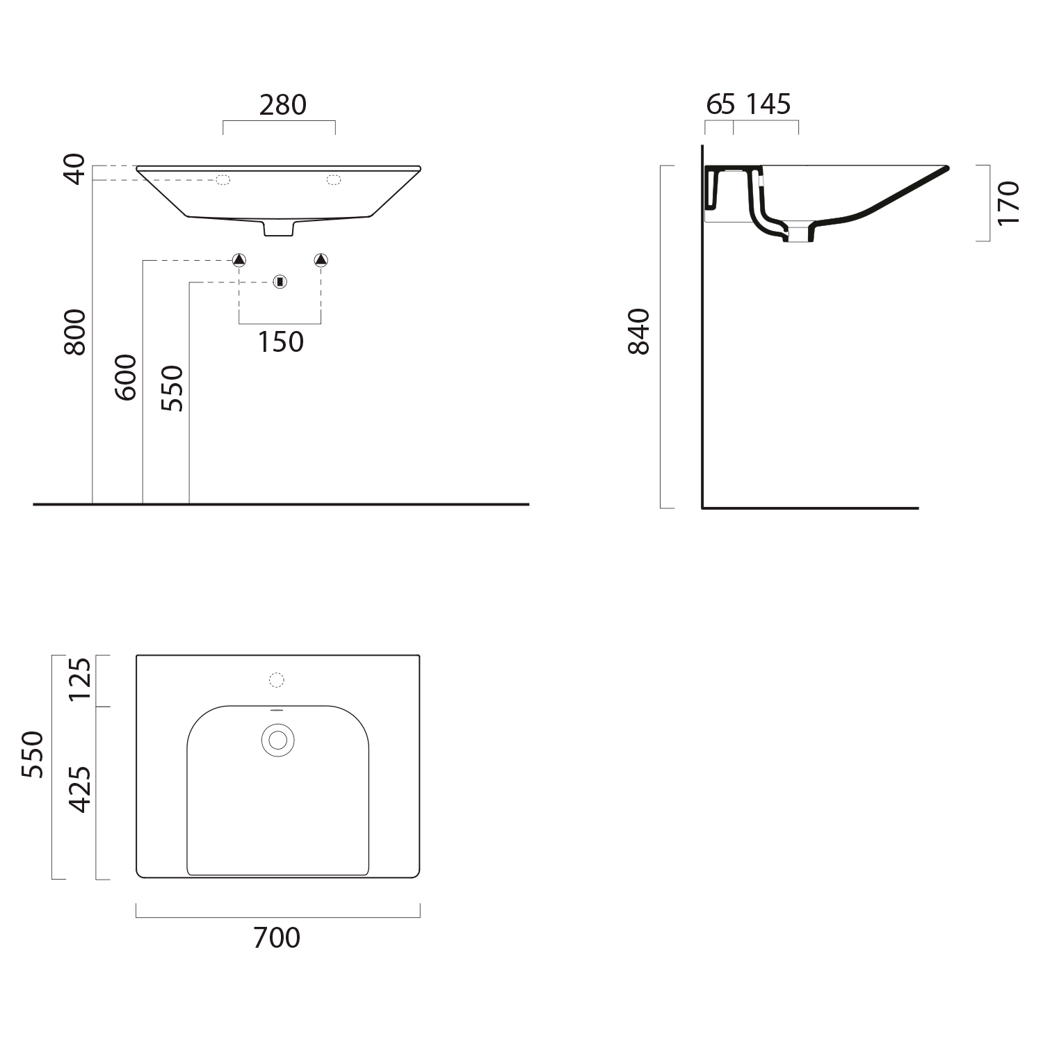 7633026 GSI COMMUNITY kerámiamosdó, furat nélkül túlfolyóval, 70x55cm, matt fekete