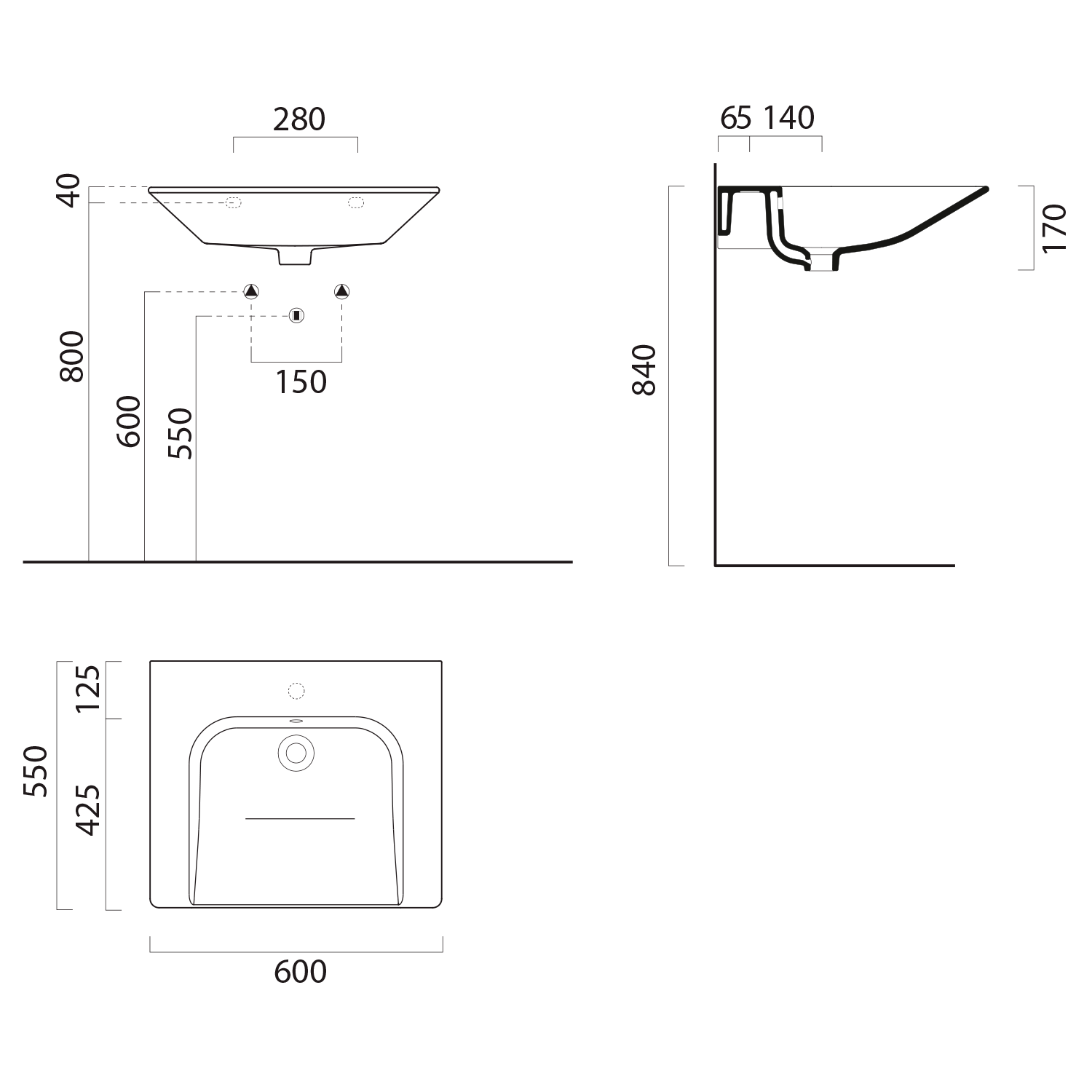 7633026 GSI COMMUNITY kerámiamosdó, furat nélkül túlfolyóval, 70x55cm, matt fekete