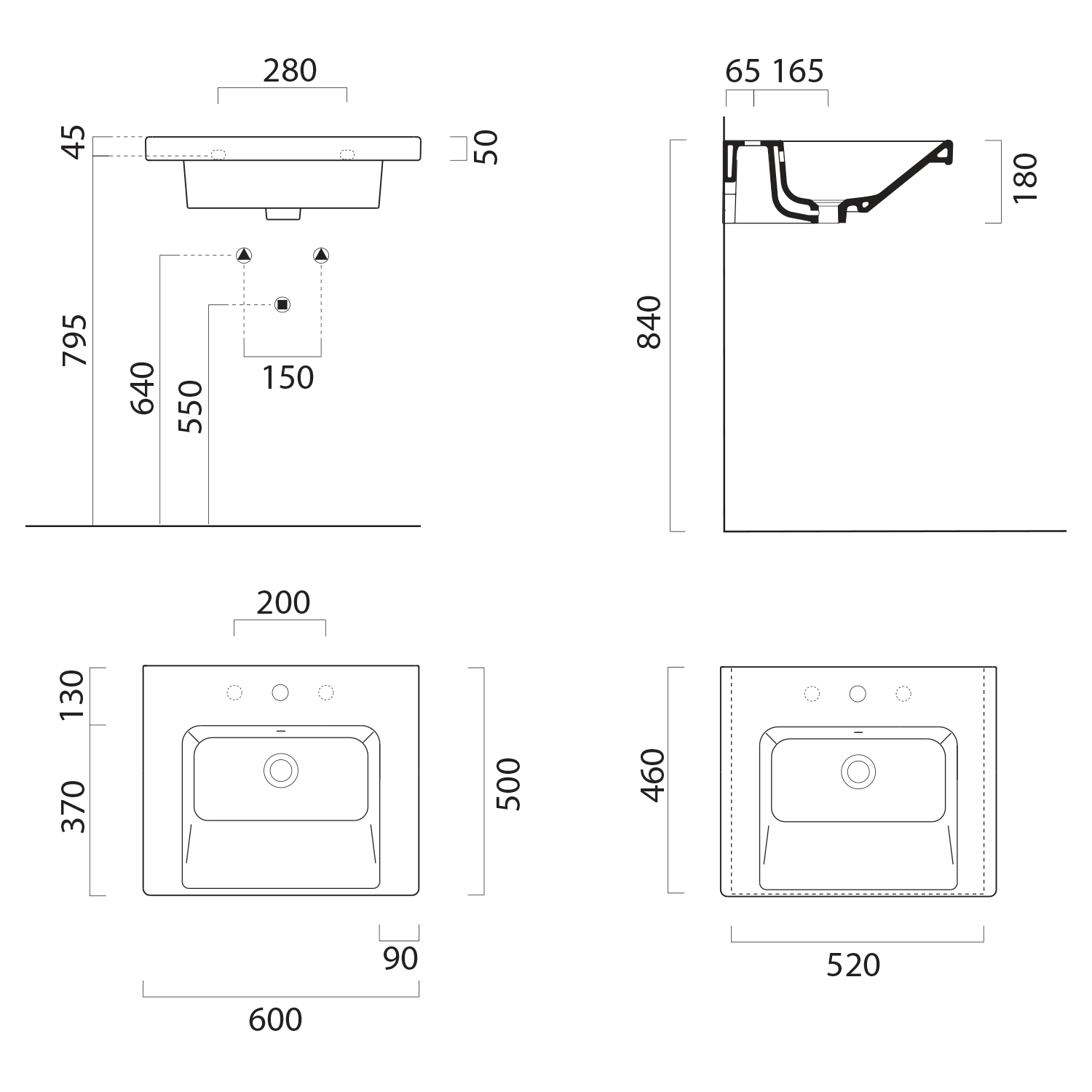 8636311 GSI NORM kerámiamosdó, 60x40cm, 3 furattal, ExtraGlaze, fehér