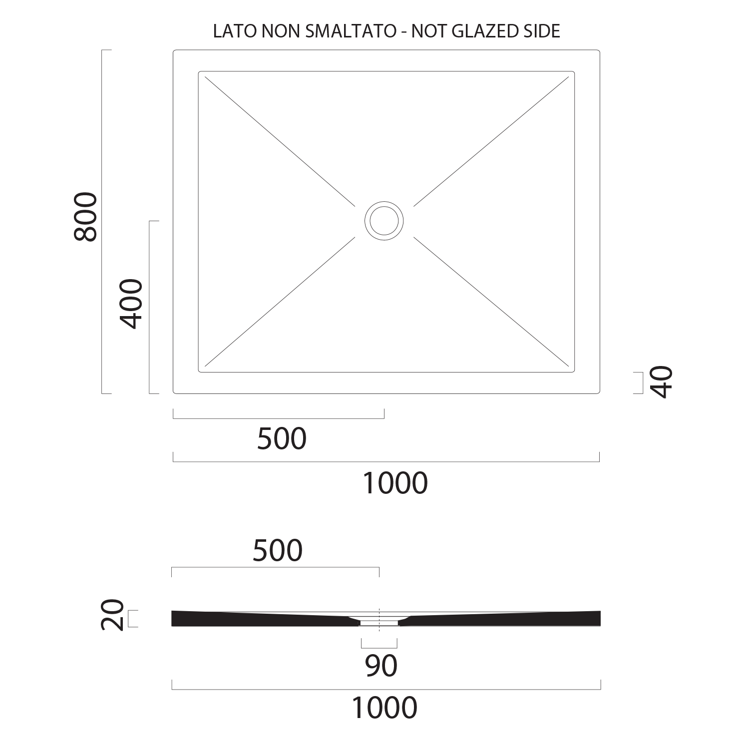 The ceramic shower tray is installed on the floor or flush with the floor.