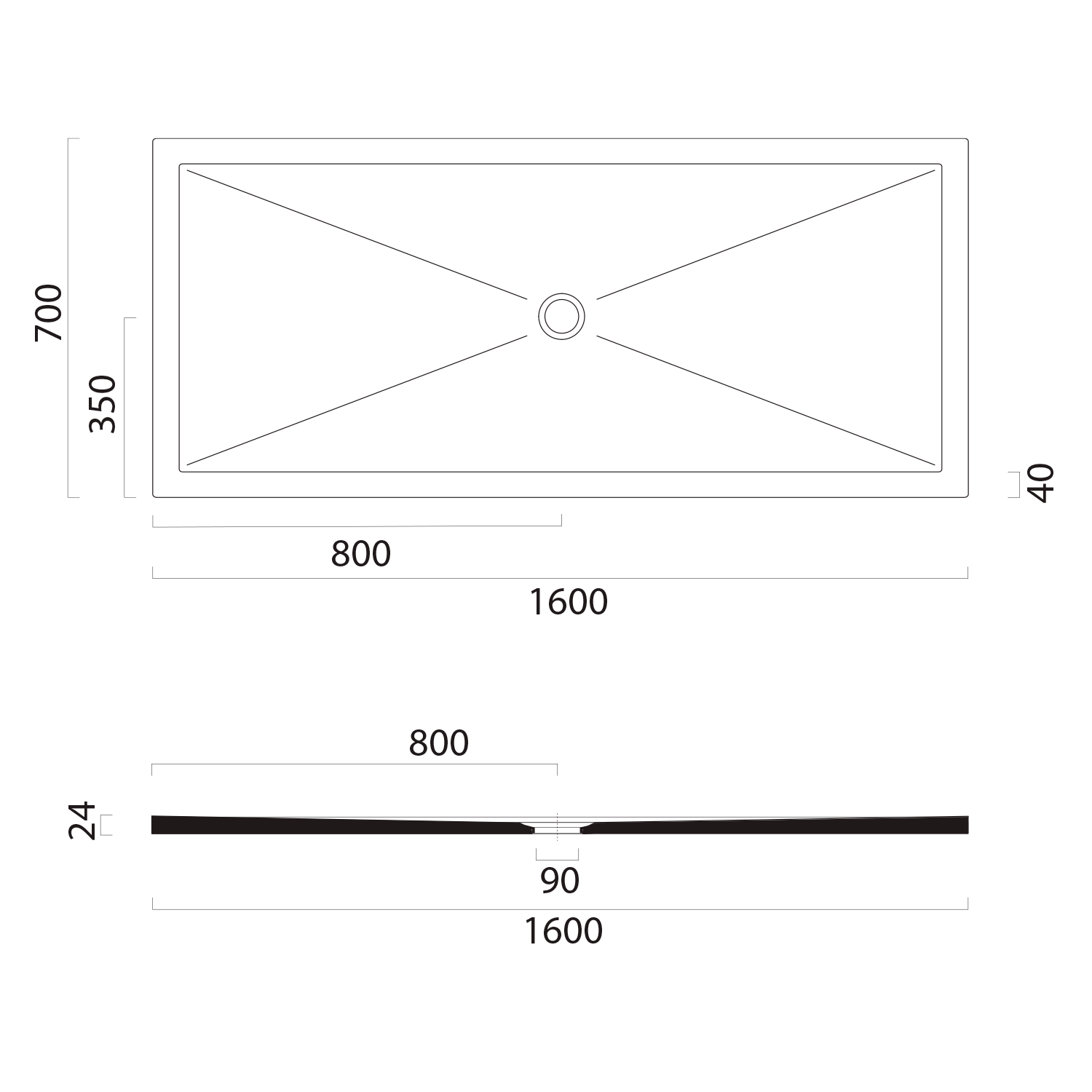 GSI EXTRA FLAT zuhanytálca, 160x70x2cm, matt fekete (46160726)