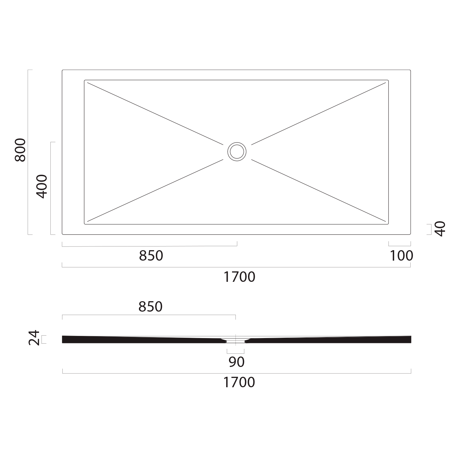 46170726 GSI EXTRA FLAT zuhanytálca, 170x70x2cm, matt fekete
